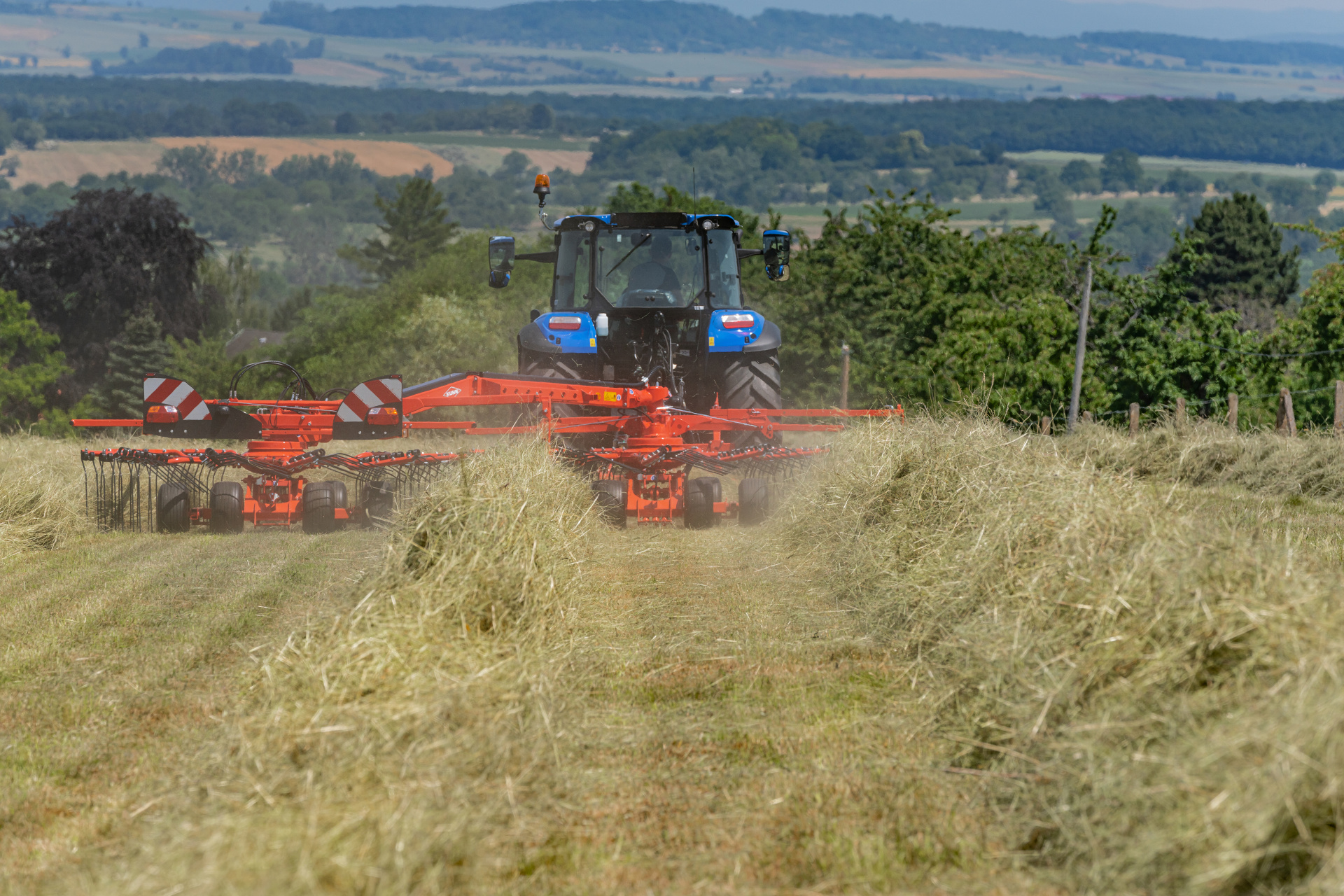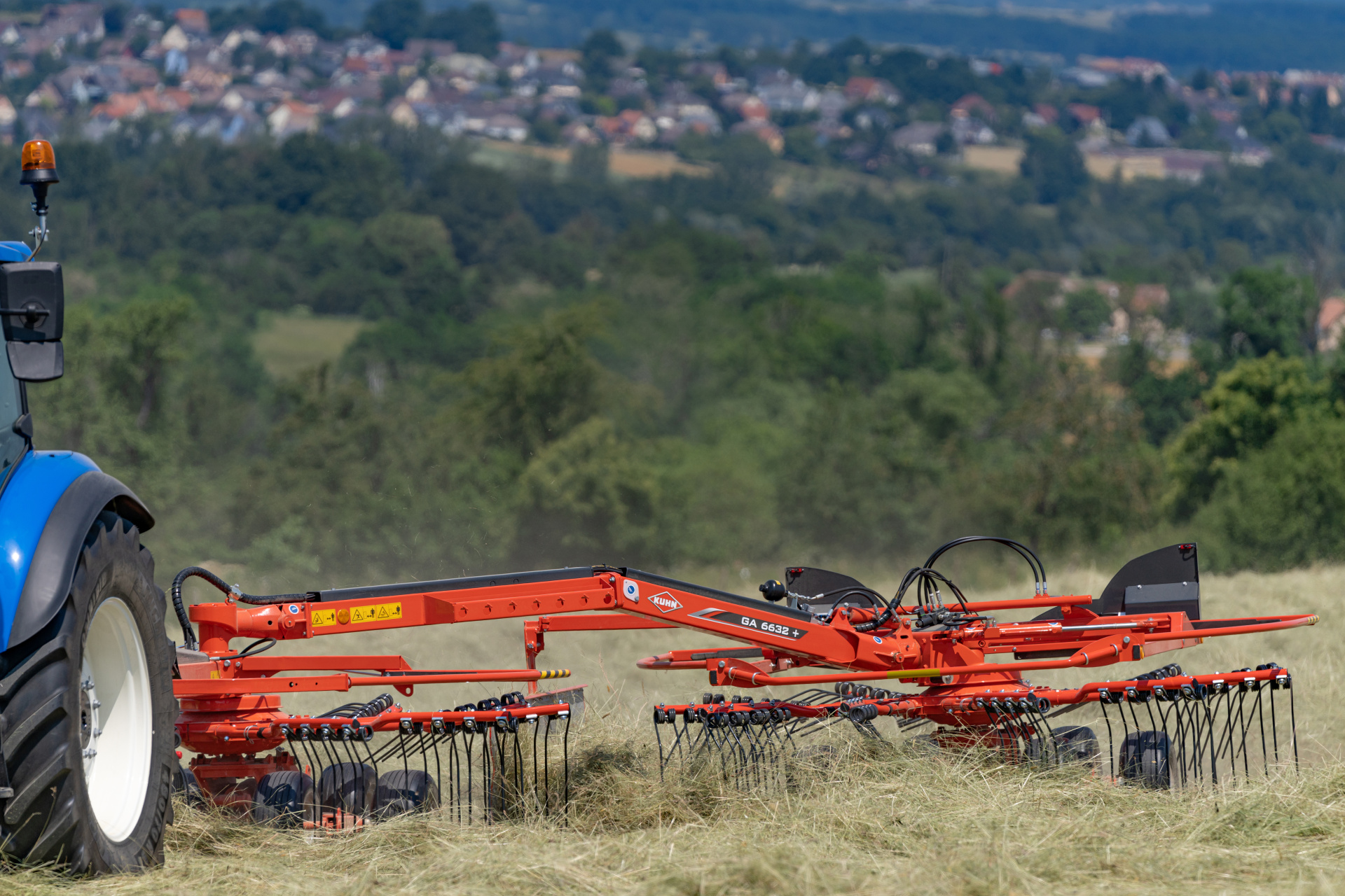 GA 9032+ je největší tažený shrnovač s bočním řádkováním na trhu - skutečný mezník s pracovním záběrem až 8,80 m v poloze dvou řádků. A co víc, jeho poměr cena/pracovní šířka je bezkonkurenční.