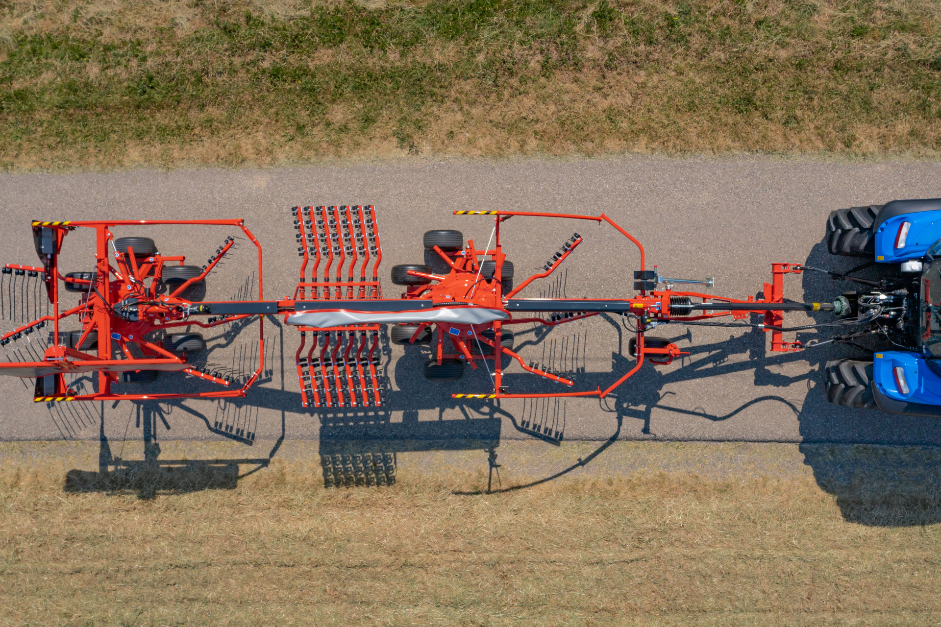 Shrnovač se k traktoru připojuje velmi jednoduše pomocí oje, která umožňuje výškové nastavení. Přední část oje je vždy vodorovná bez ohledu na výšku rotorů, což zabraňuje případnému zasekávání o závěs traktoru.