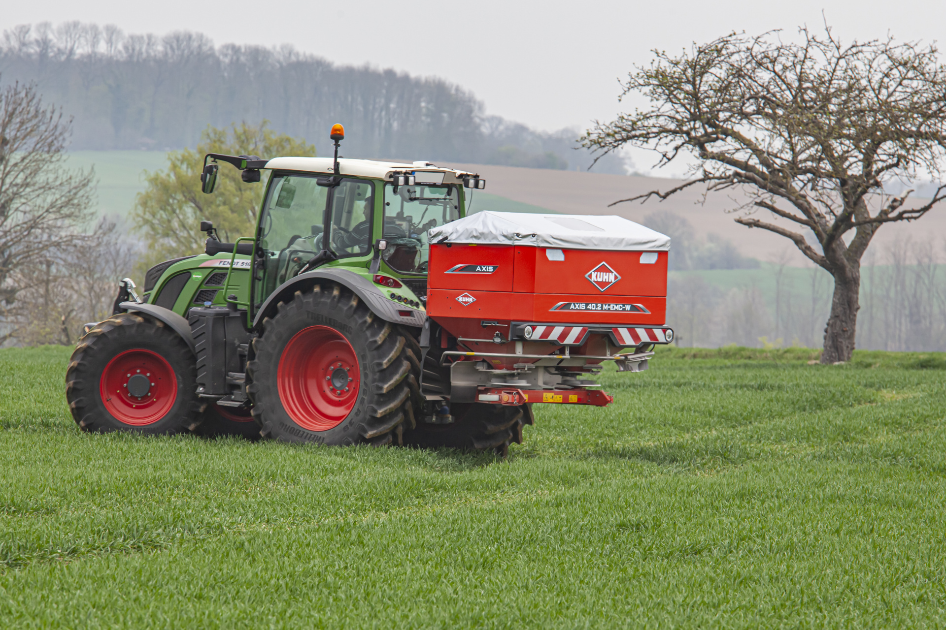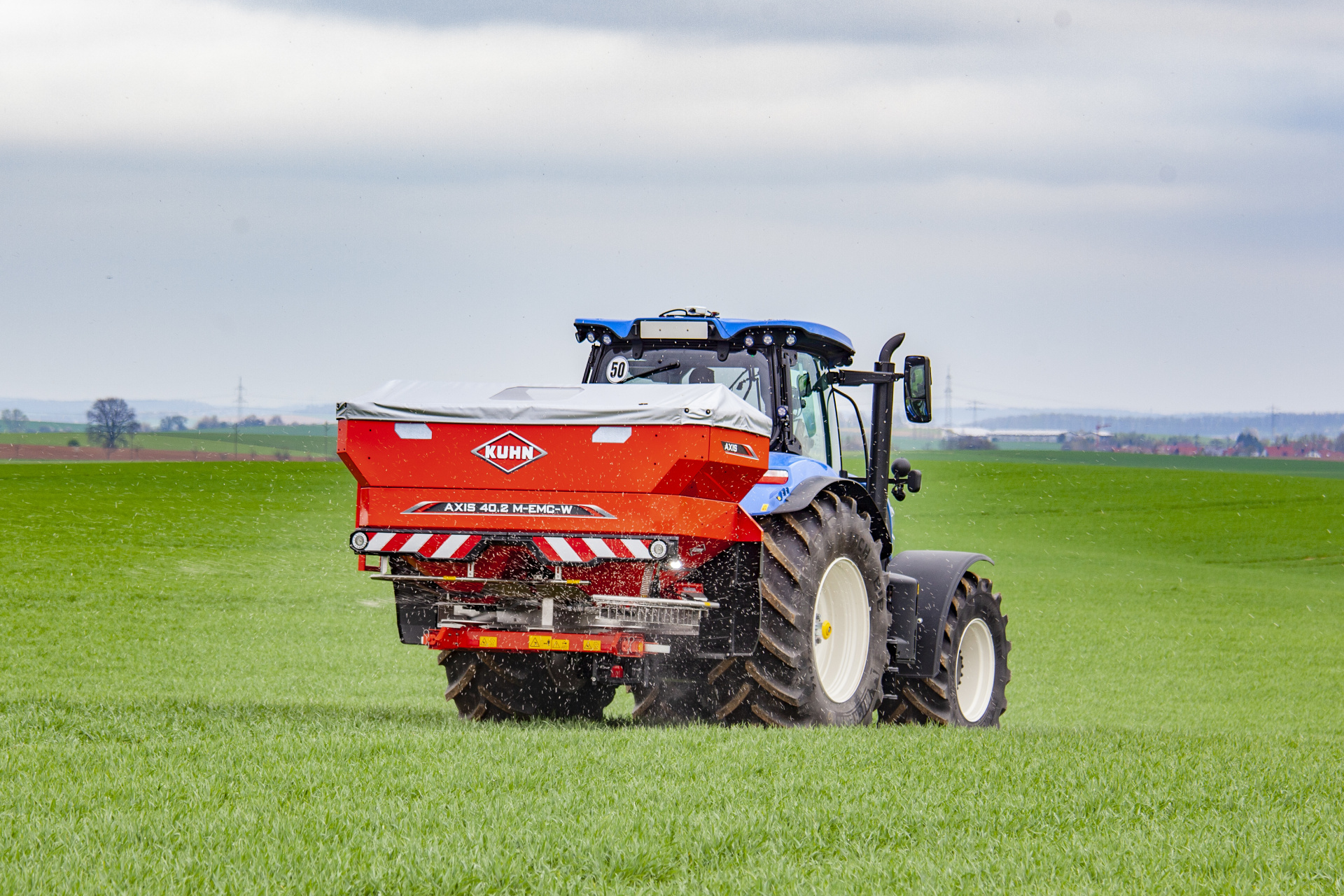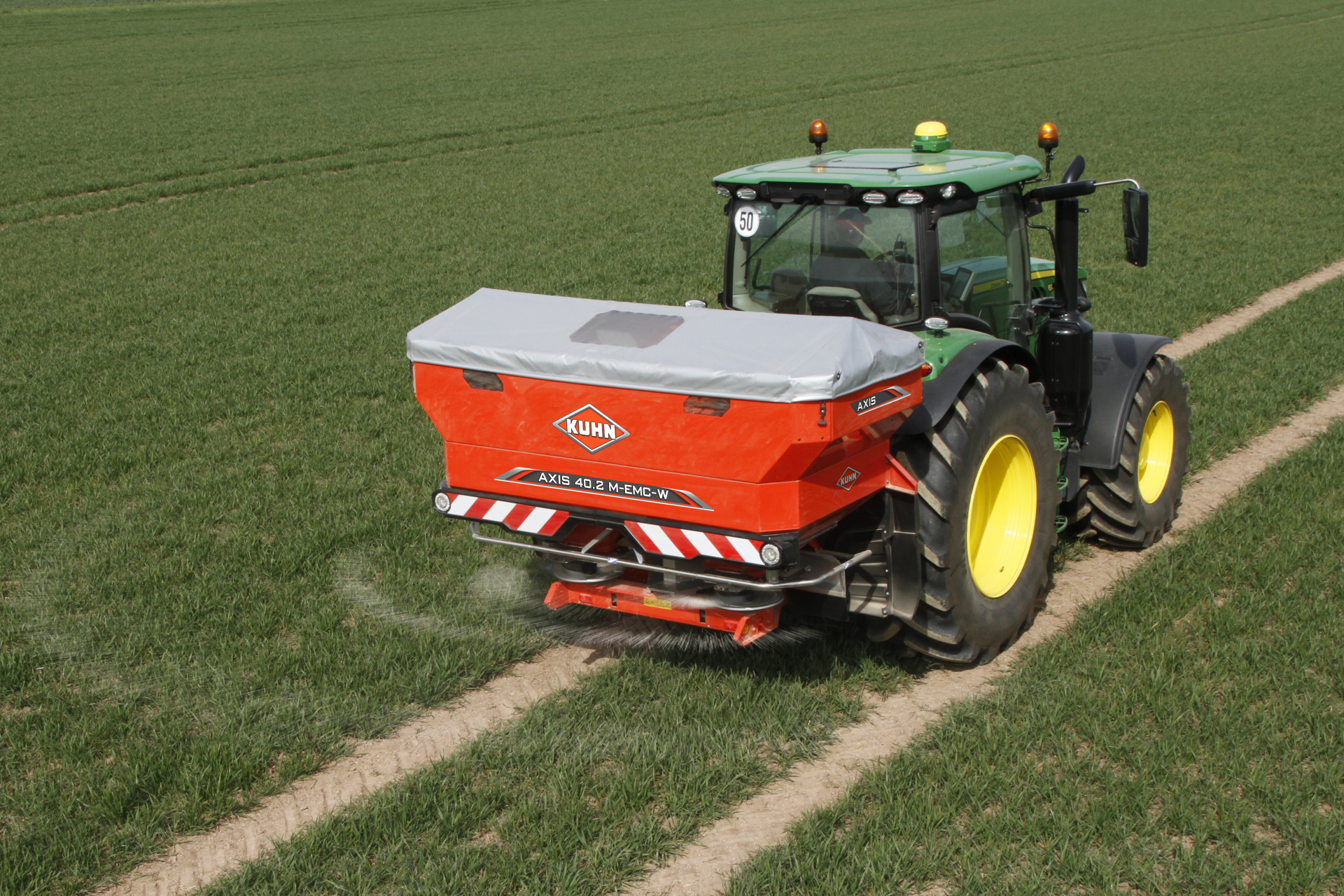 Systém EMC není klasický vážicí systém. Vážení aplikačního množství přímo na disku je nejpřesnější možné. Ale model KUHN AXIS 40.2 EMC W je vybaven tímto vážícím systémem s pracovním záběrem od 12 do 42 m.