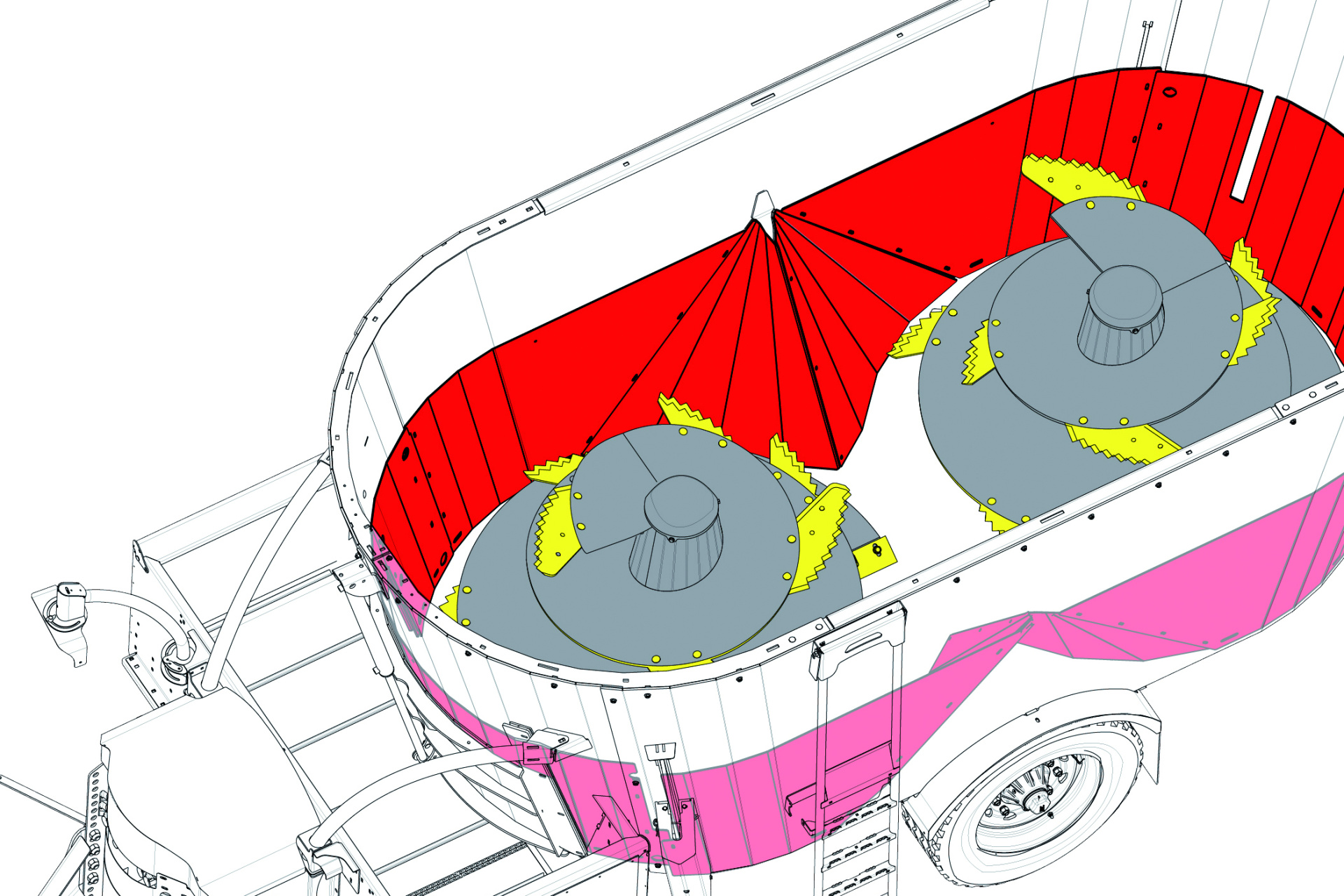 Kombinace předpjatého pomocného rámu a pevné základny krmného šneku poskytuje maximální odolnost vůči ložisku ve spodní části vozu.