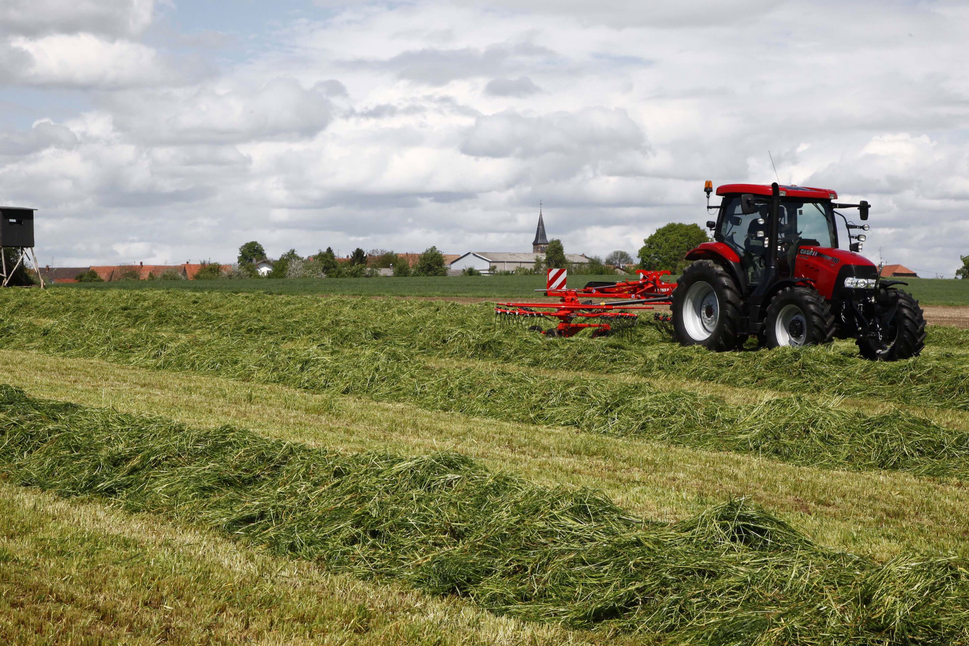 Velká šířka tohoto stroje zvyšuje pracovní výkon ve srovnání s jedním rotorovým shrnovačem a také šetří váš čas. Pro jízdu po silnici nyní není třeba demontovat ramena prstů.