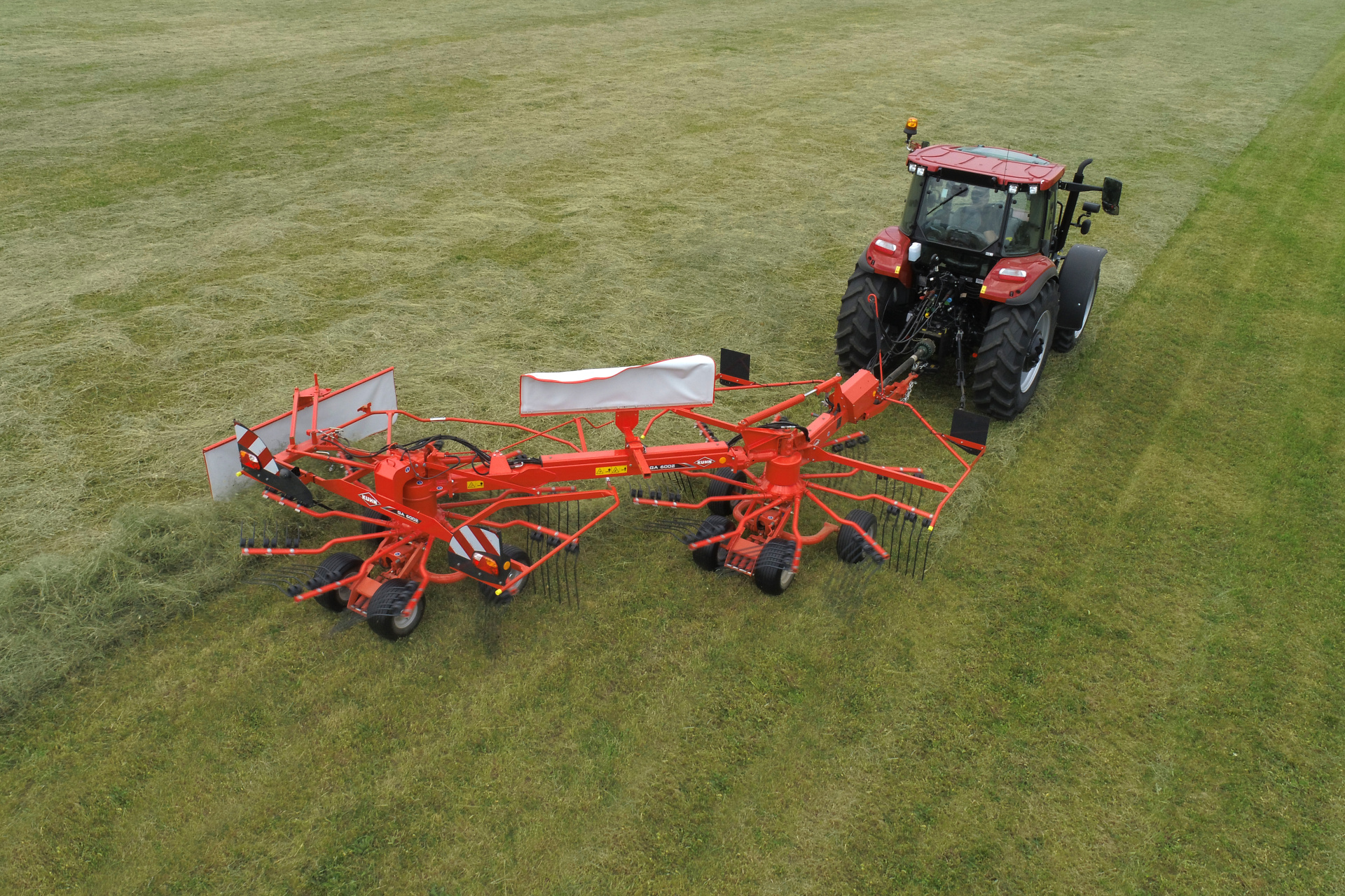 Šířka shrnovače je hydraulicky nastavitelná od 3,00 do 5,80 m, takže již není problém měnit hustotu píce, objíždět překážky a dokončovat pole. Pro velmi hustou píci a pro tvorbu řádků v noci může GA 6002 tvořit také dva řádky z každého přejezdu.