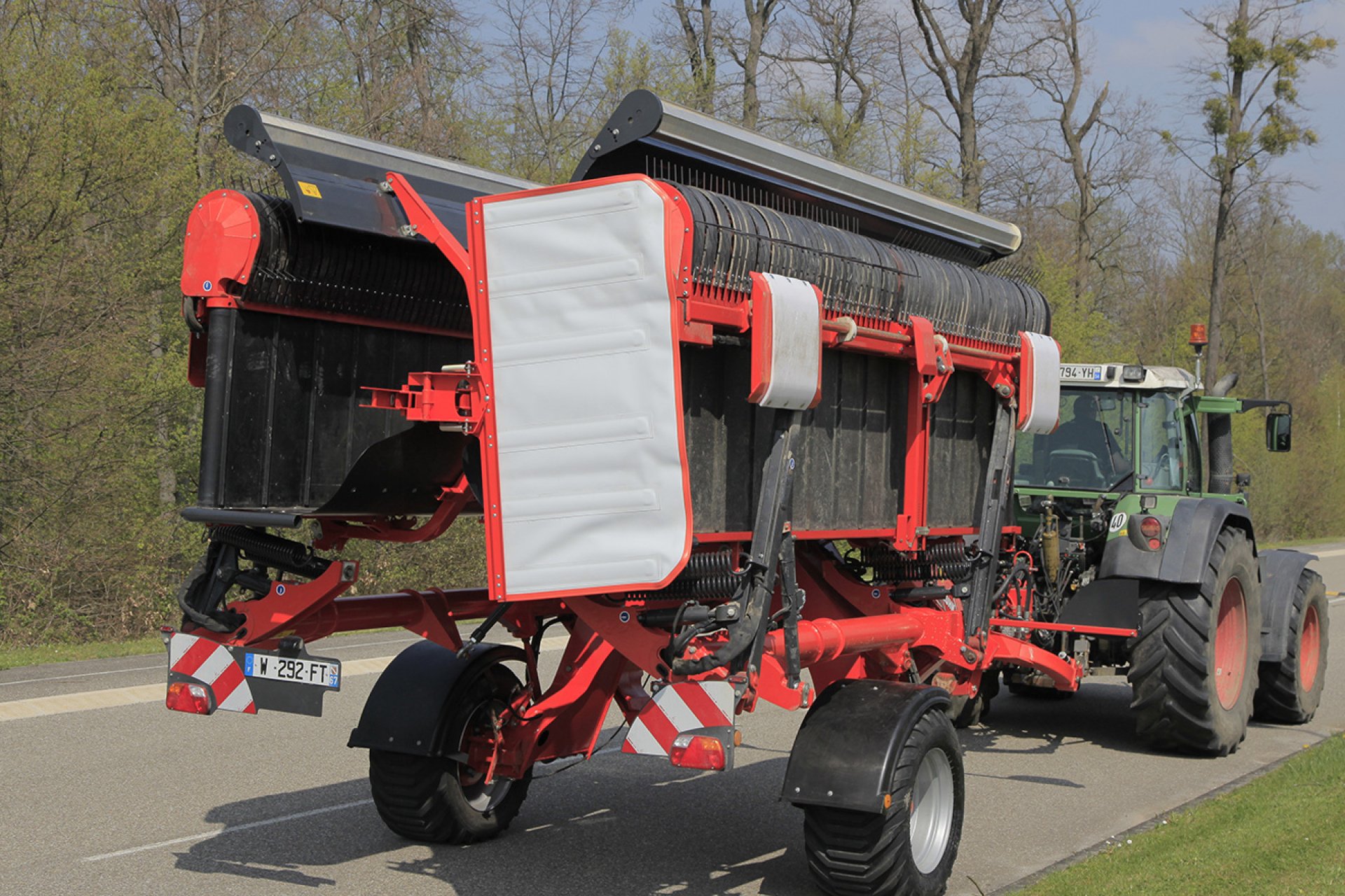 Když jsou sběrací jednotky umístěny vedle sebe a pásy se otáčejí ve stejném směru, vzniká jedna řádek o délce přibližně 7,5 metru, umístěný buď vpravo, nebo vlevo.