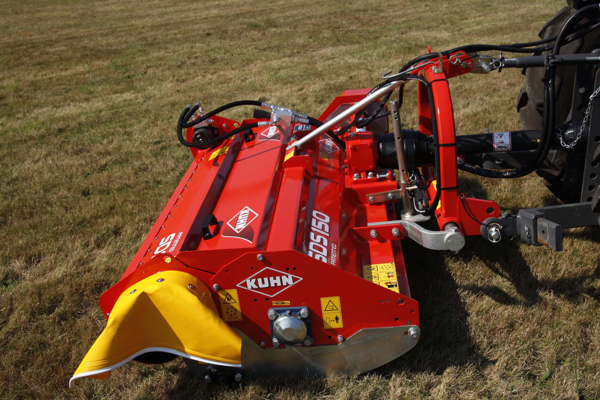Kryt mulčovače je vybaven dvěma protinoži, které zajišťují efektivní práci ve vinicích a sadech. V kombinaci s těžkými kladivovými noži namontovanými na rotoru mulčuje trávu a odřezky s vysokou účinností, čímž se minimalizuje riziko ucpání přepravního šneku.