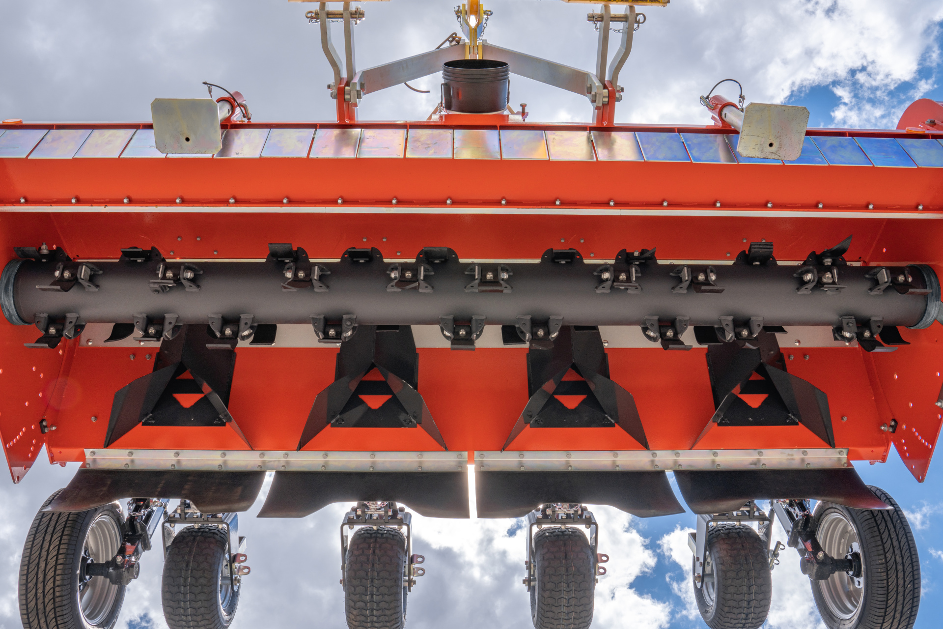 Vysokorychlostní rotor (1758 ot./min) s průměrem 647 mm zajišťuje vysokou sací kapacitu pro zpracování velkého množství bramborové natě. Mulčovač je standardně vybaven protinoži a šroubovaným plechem, což zajišťuje kombinaci vysoké odolnosti a jemného mulčování.