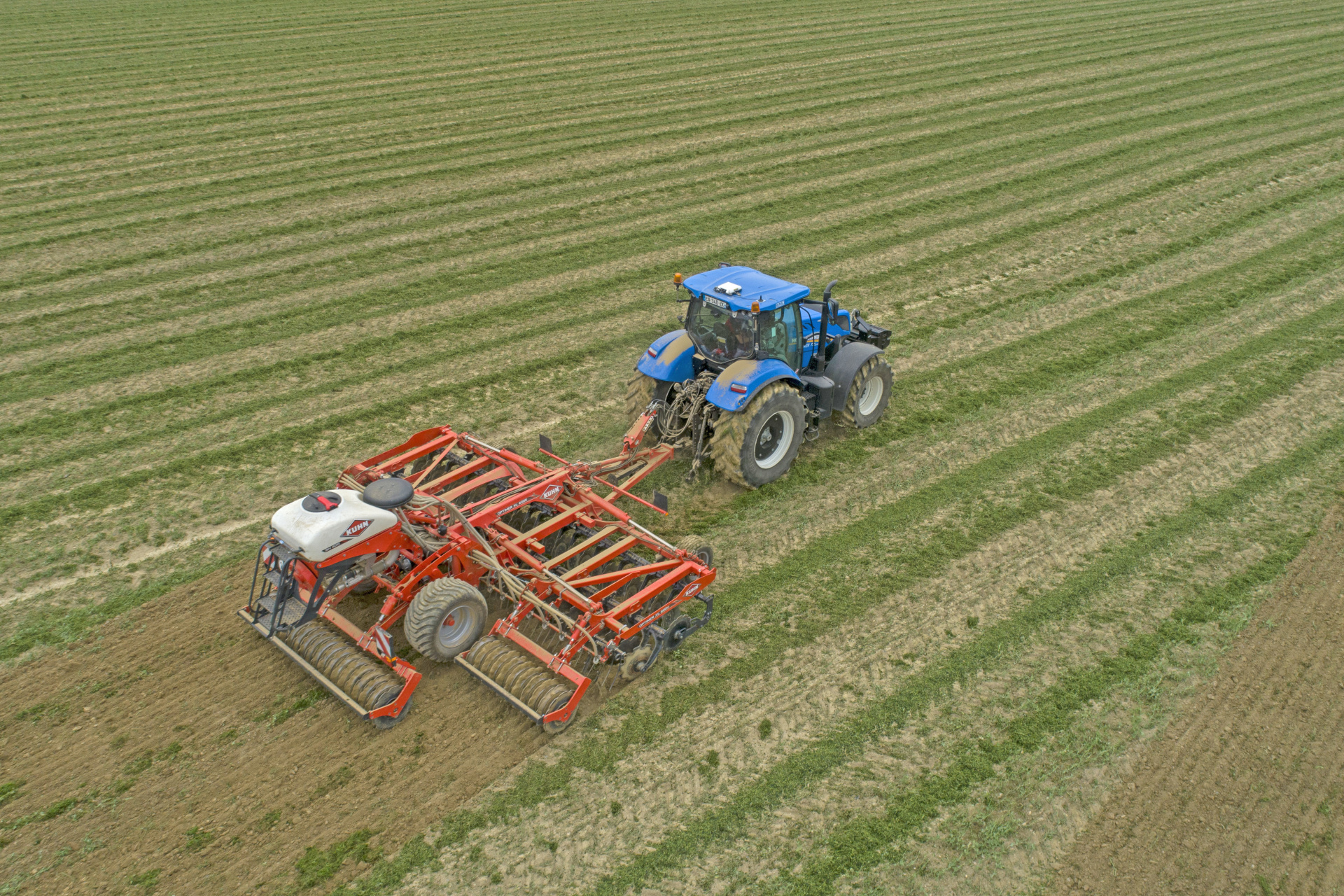 - Válec HD-Liner s profilem ve tvaru V usnadňuje pronikání vody do rozteče řádků a zpevňuje půdu do hloubky.