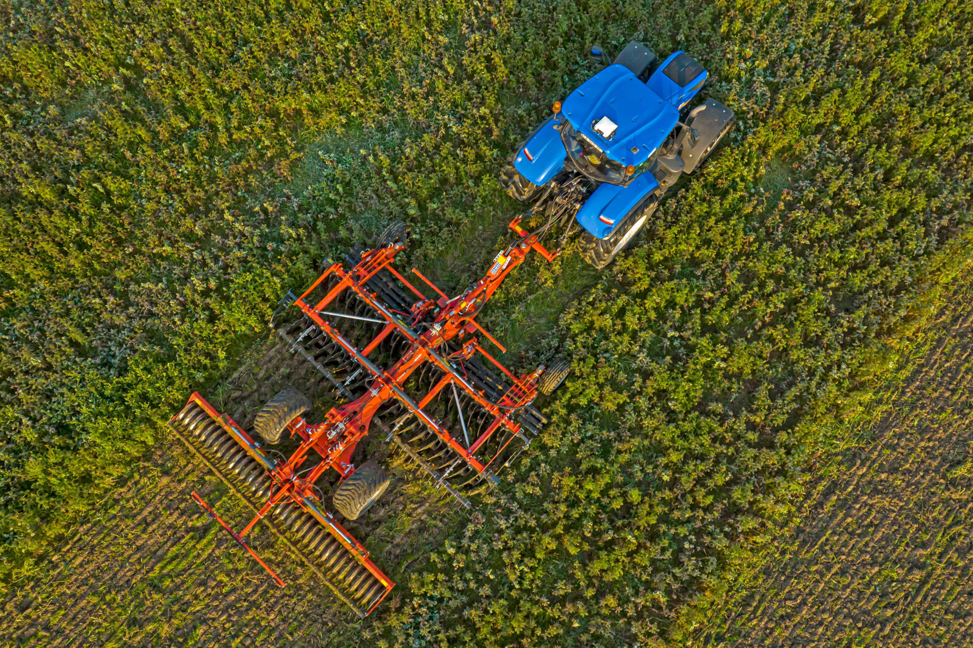 Drticí válec umístěný v přední části OPTIMER prořezává vegetaci před průchodem disků a urychluje rozklad v půdě.