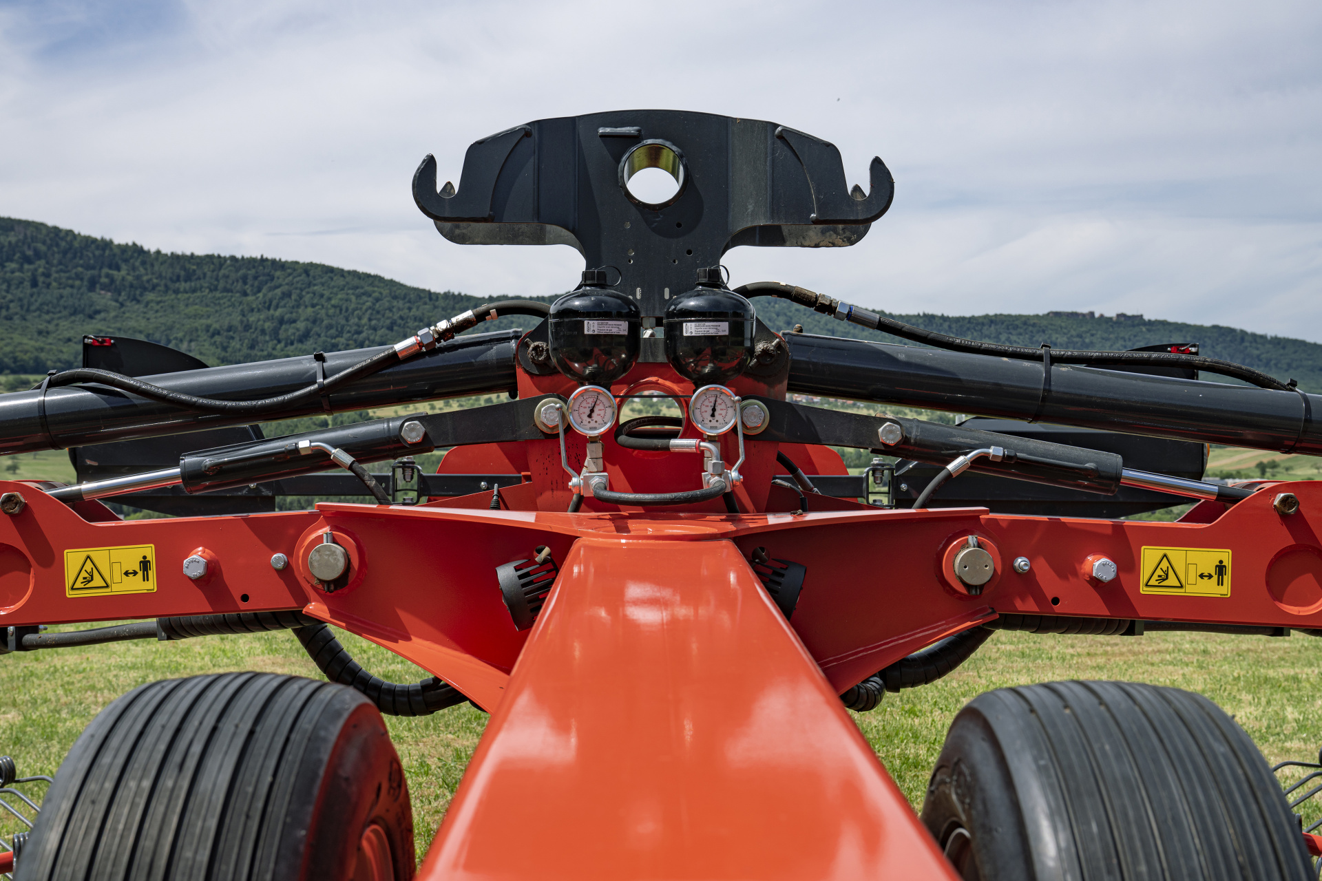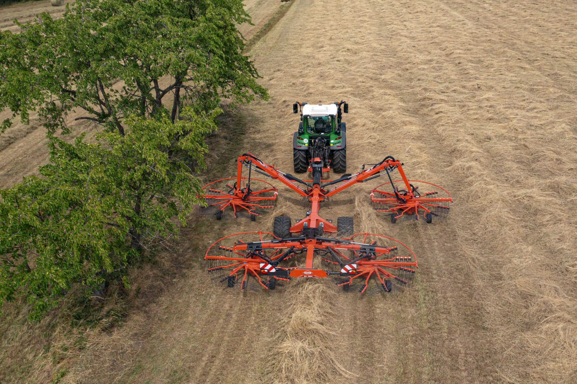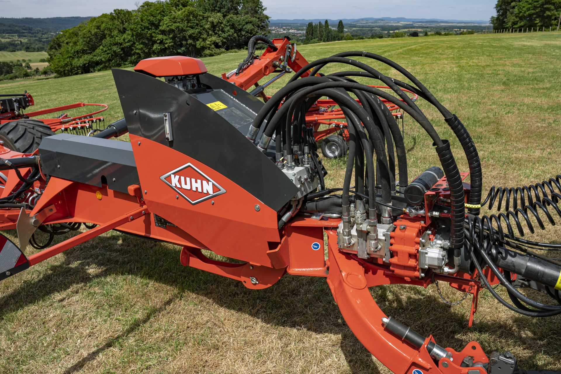 Předprogramovaná sekvence, integrovaná do softwaru ISOBUS, usnadňuje a optimalizuje otáčení na souvrati. Lze jej snadno přizpůsobit vašim potřebám. Díky úhlovým senzorům se rotory vždy zvednou do přednastavené výšky, bez ohledu na pracovní šířku. Jakmile jsou všechny předvolby provedeny, vše, co musíte udělat, je stisknout tlačítko. Pohodlně se usaďte a nechte elektroniku pracovat za vás!