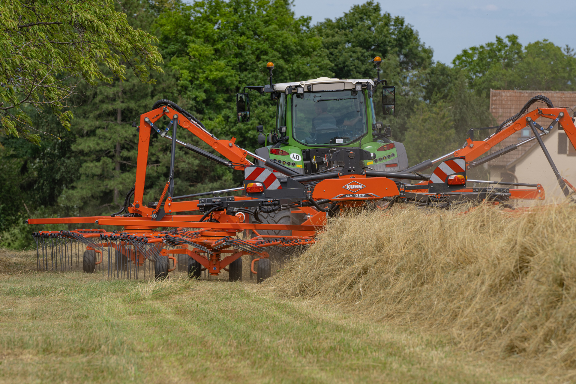 Homogenita a objem řádků jsou předpokladem pro rychlé sušení a snadné další zpracování sklízecími stroji. Ramena prstů shrnovačů GA jsou umístěna hypertangenciálně. To znamená, že velmi pozdě dosáhnou úhlu 90°. Průchod píce prsty je rychlý, pozdější a vyžaduje malou námahu při otáčení. Takto vytvořené řádky jsou pravidelnější, objemnější a rovnější. Řádkování je lepší i při vysokých rychlostech, protože plodina není tlačena za řádek.