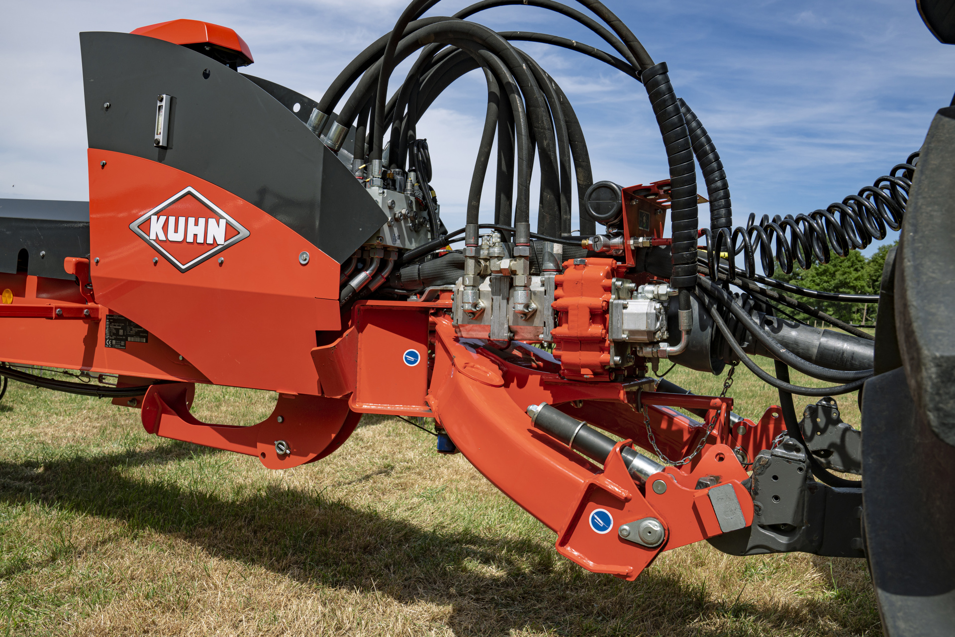 Tyto velké šířky vyžadují vynikající přizpůsobivost stroje požadavkům sklízecích strojů nebo lisů za sklízecím řetězcem. Tato flexibilita umožňuje plynulé a hydraulické nastavení pracovní šířky a šířky zakládky z kabiny: