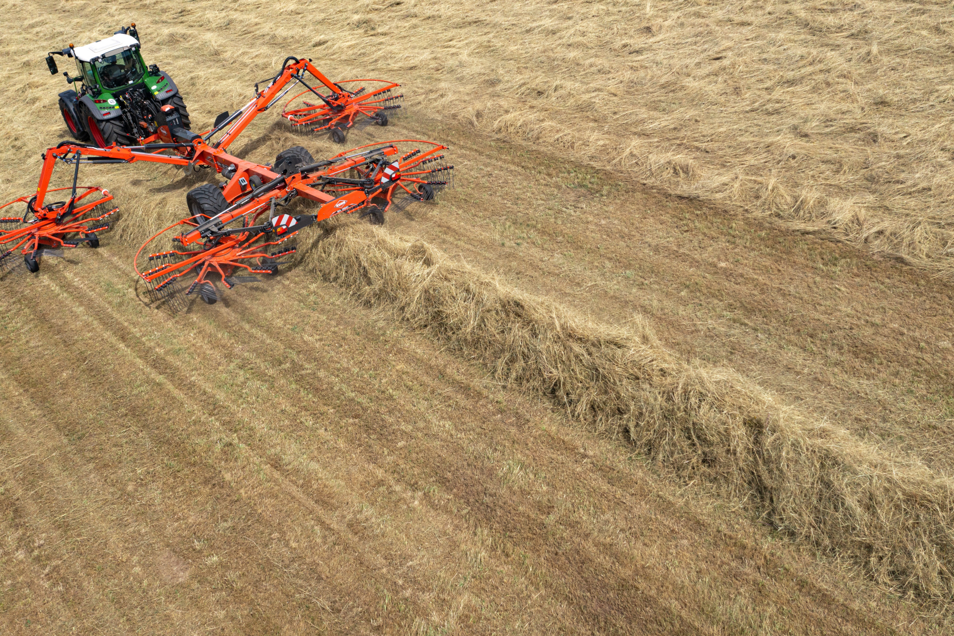 Čtyři rotorové shrnovače píce od firmy KUHN jsou plně vybaveny tak, aby splňovaly tyto požadavky: