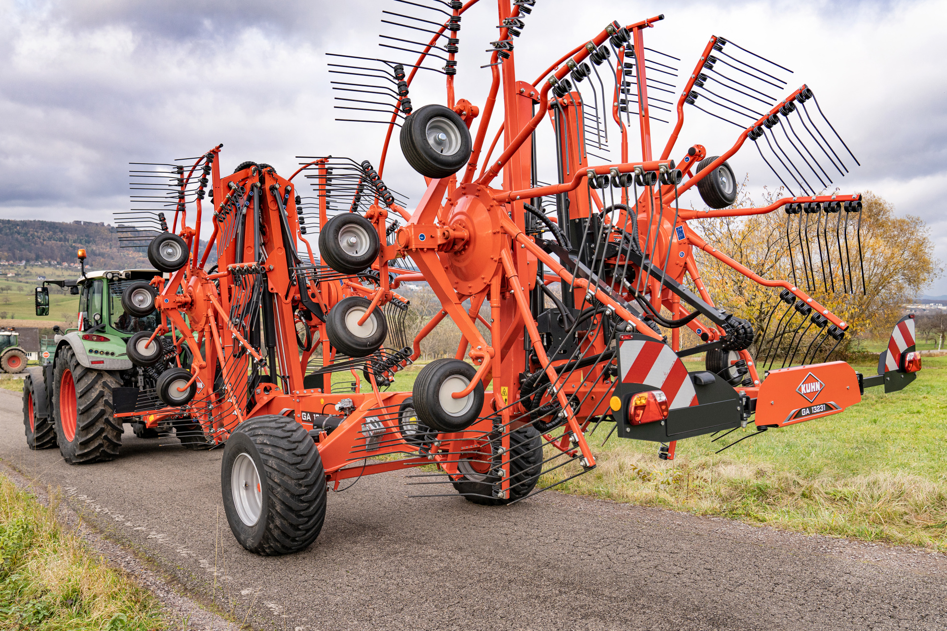Čtyřrotorové shrnovače píce GA 13231 a GA 15231 pracují od 8,40 m do 12,50 m a od 9,50 do 14,70 m. Jejich 100% hydraulický pohon vám ušetří jednu hodinu údržby denně. Vyznačují se četným vývojem, a to jak z hlediska kvality shrnování, snadného použití a životnosti stroje.