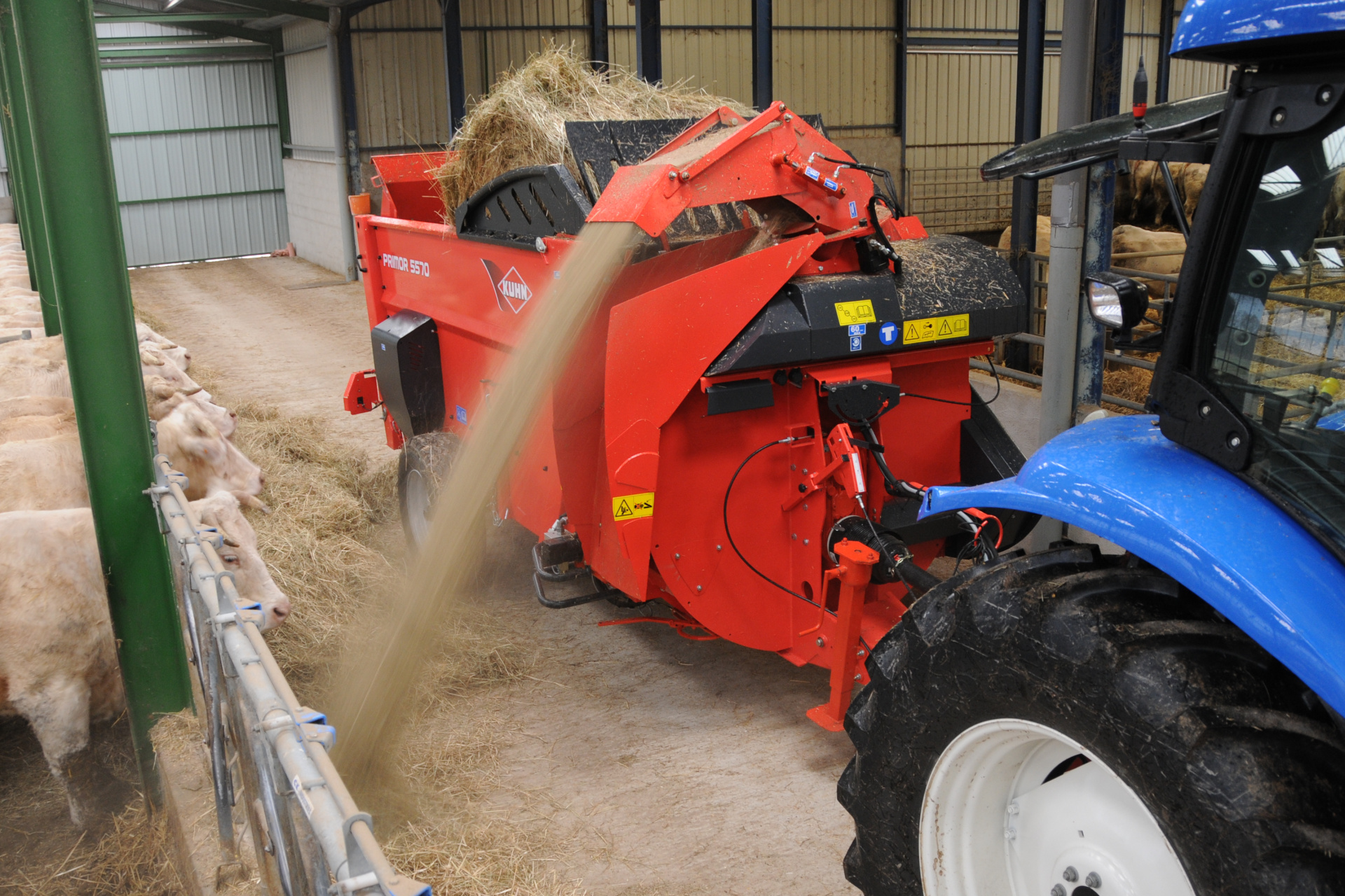Standardní nastavitelné regulační hroty umožňují vozu přizpůsobit se vlastnostem podávaného materiálu a zajistit plynulý a rovnoměrný provoz při rozprostírání podestýlky.