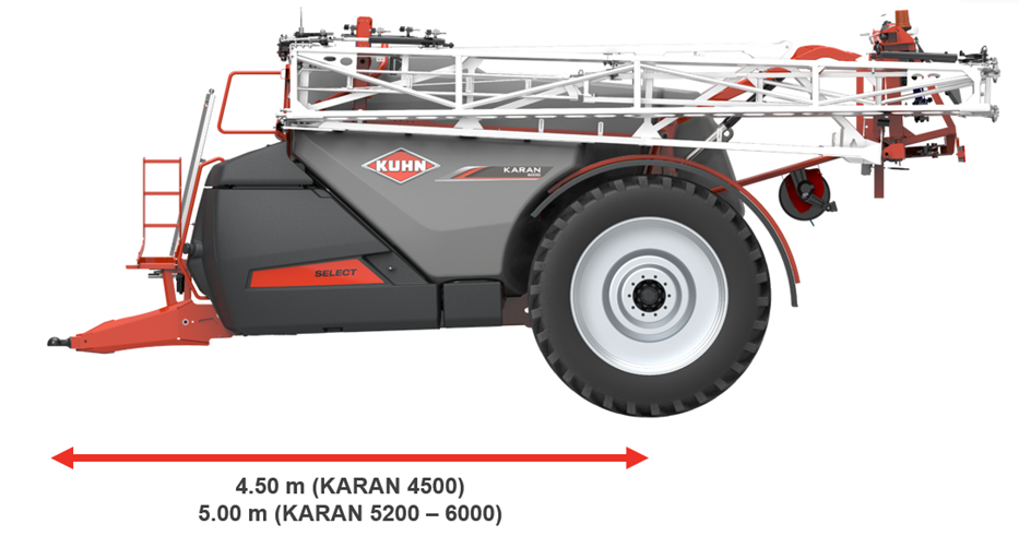 S KARANem se manipuluje mimořádně snadno. Konstrukce stroje je optimalizována pro kompaktní rozměry: u modelů KARAN 5200 a 6000 je vzdálenost mezi závěsem a nápravou pouhých 5 metrů, což zajišťuje výjimečnou flexibilitu i na těsných polích.
