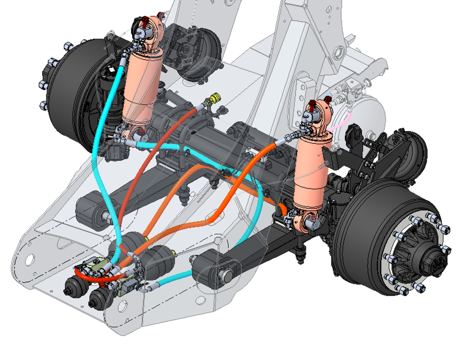 Postřikovač je standardně vybaven robustním mechanickým odpružením listovými pružinami, známým svou odolností a nízkými nároky na údržbu. Volitelně je k dispozici hydropneumatické odpružení s automatickou kompenzací zatížení nádrže, které poskytuje vynikající jízdní komfort jak na silnici, tak hlavně v terénu.