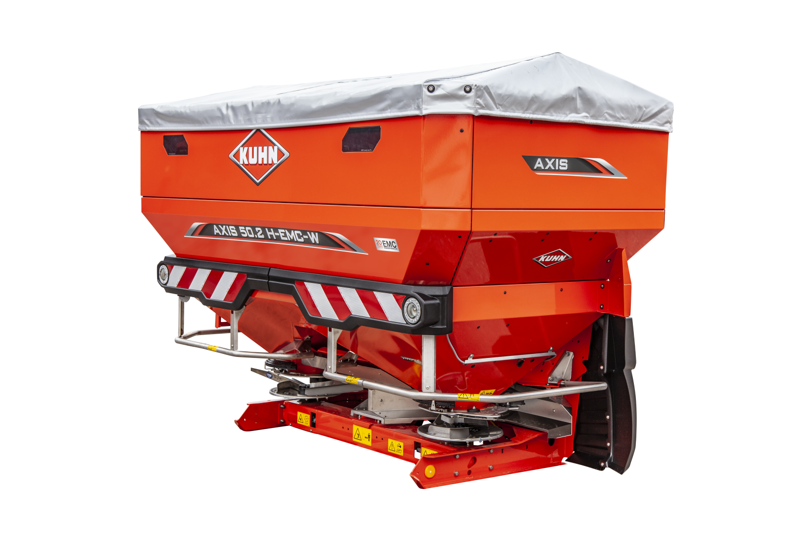 Rozmetadla KUHN AXIS 50.2 EMC W je možné objednat jak ve variantě s pohonem poháněným kardanem, tak s hydraulickým pohonem.