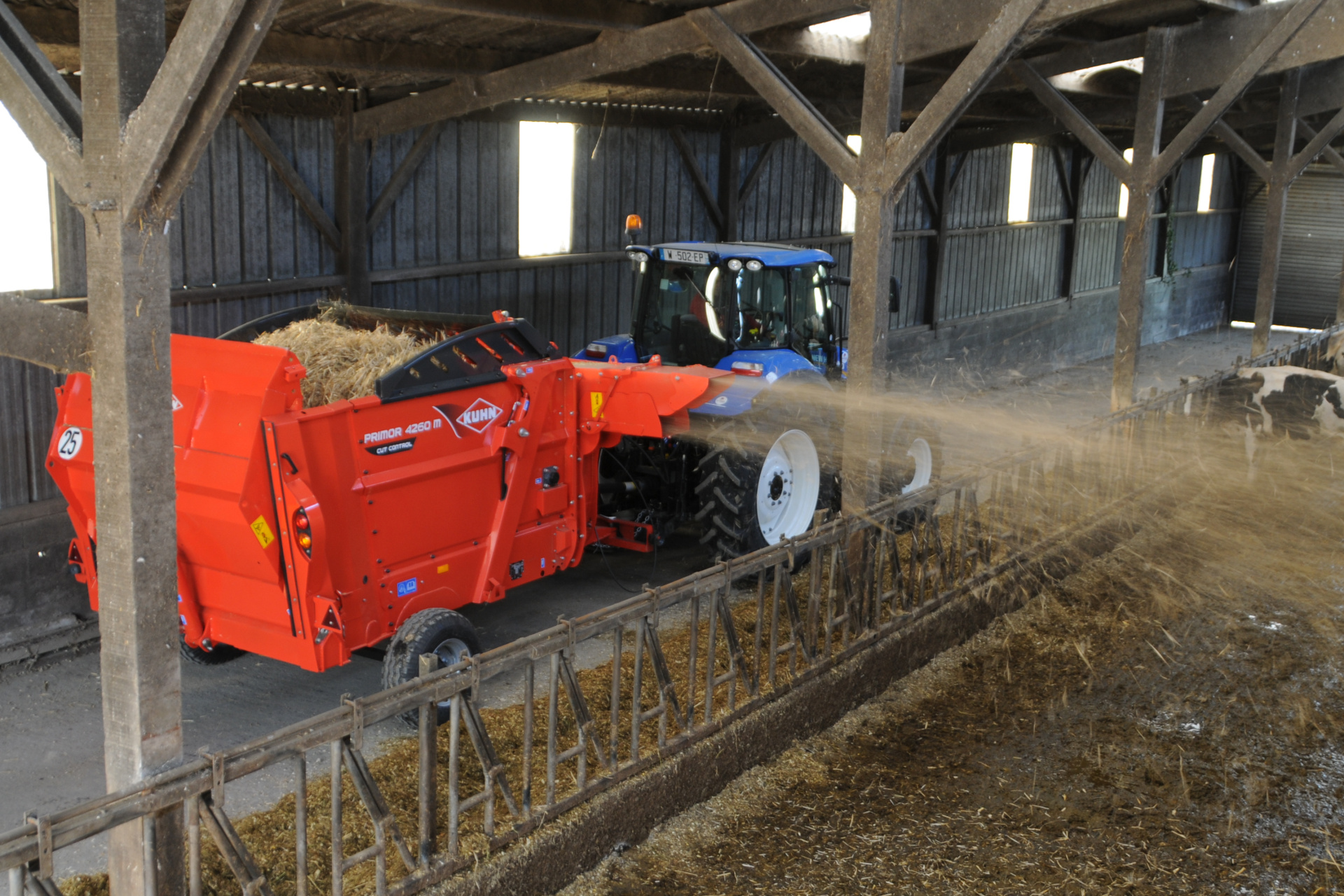 Stroj je navržen pro krmení siláží i pro rozdělování dlouhých vláken, jako je seno nebo balená sláma.