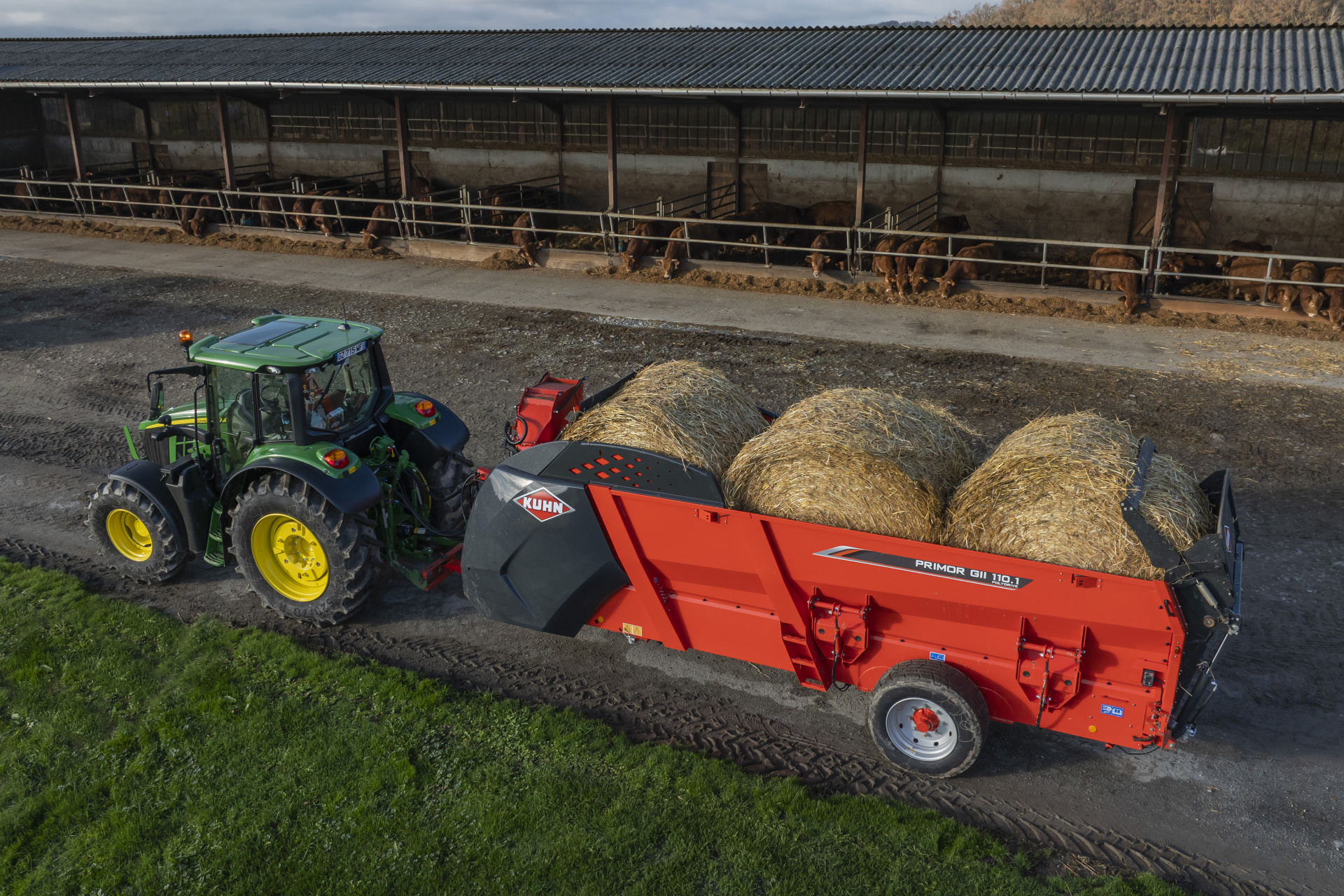 PRIMOR GII 110.1 Polydrive patří mezi největší dmychadla a podavače slámy s kapacitou přes 10 m³ na světě a byl navržen s ohledem na ergonomii a efektivitu obsluhy.