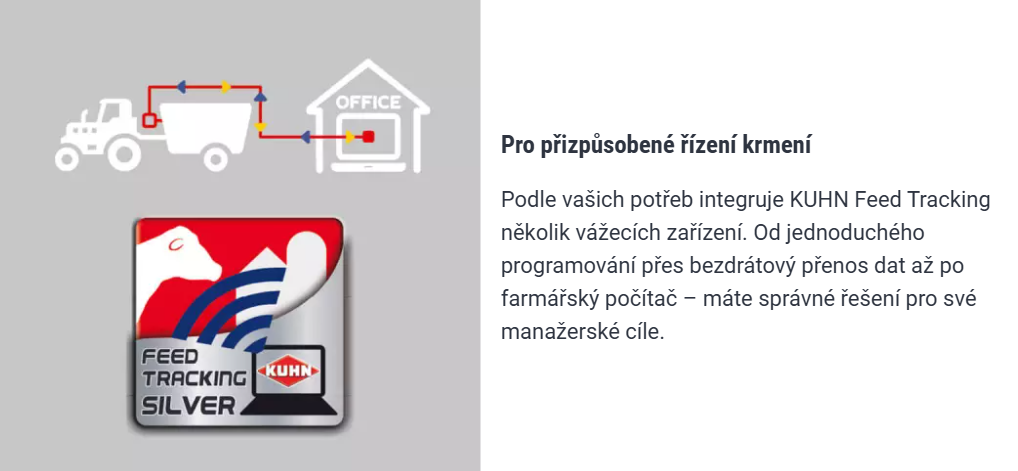 Exkluzivní systém KUHN automaticky přizpůsobuje rychlost klesání frézovací hlavy podle hustoty krmiva. Tento systém: