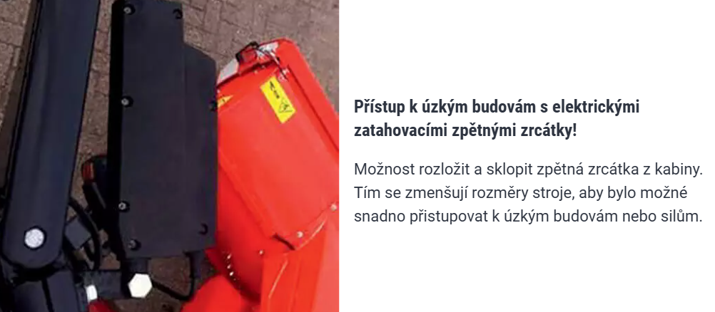 Tento design umožňuje snadné a rychlé dávkování krmiva i v omezených prostorech, aniž by byla ohrožena bezpečnost nebo výkon stroje.