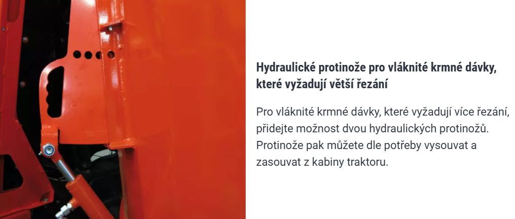 Dvojitý úhel sklonu šneku umožňuje rychlé rozmělnění krmiva, bez ohledu na to, jak je vůz již naplněn.