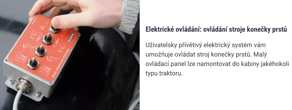 | Ovládání | Přímé ovládání hydraulikou traktoru (elektronické ovládání na přání) | ||||||||