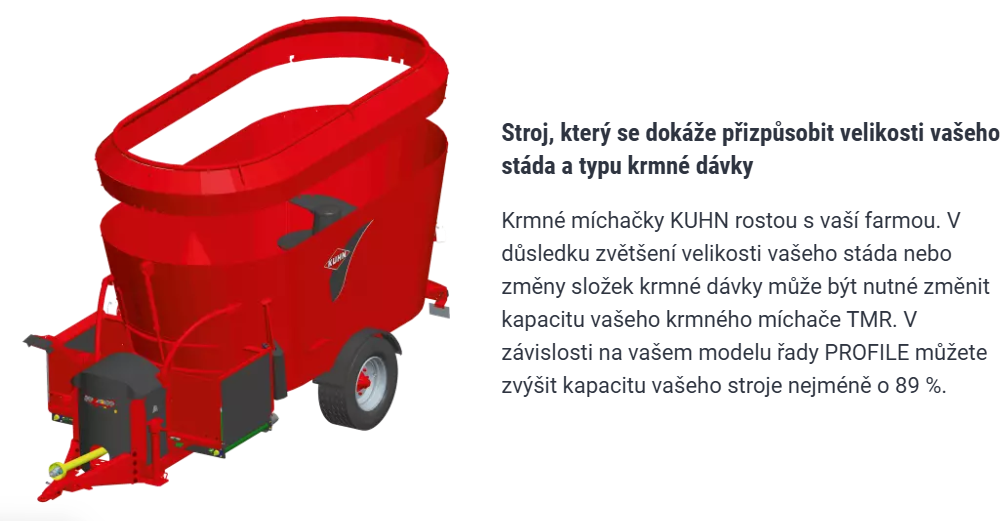 Řada PROFILE nabízí široký výběr řešení pro distribuci krmiva ve všech typech stájí a krmných drah. Ať už máte přístřešky bez samostatného východu, žlaby s okraji nebo velmi úzké krmné dráhy, krmné stoly na obou stranách dráhy vyžadující simultánní distribuci nebo jiná omezení vyžadující rozdělování krmiva ze zadní části vozu – řada PROFILE nabízí řešení přesně pro vaše potřeby.