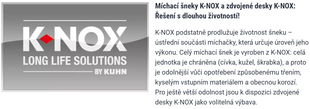 Dlouhodobá hodnota – použití technologie K-NOX zvyšuje životnost stroje a zároveň zachovává jeho vysokou prodejní hodnotu. Při prodeji se oceňuje stav šneků, nikoli stáří krmného vozu.