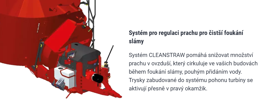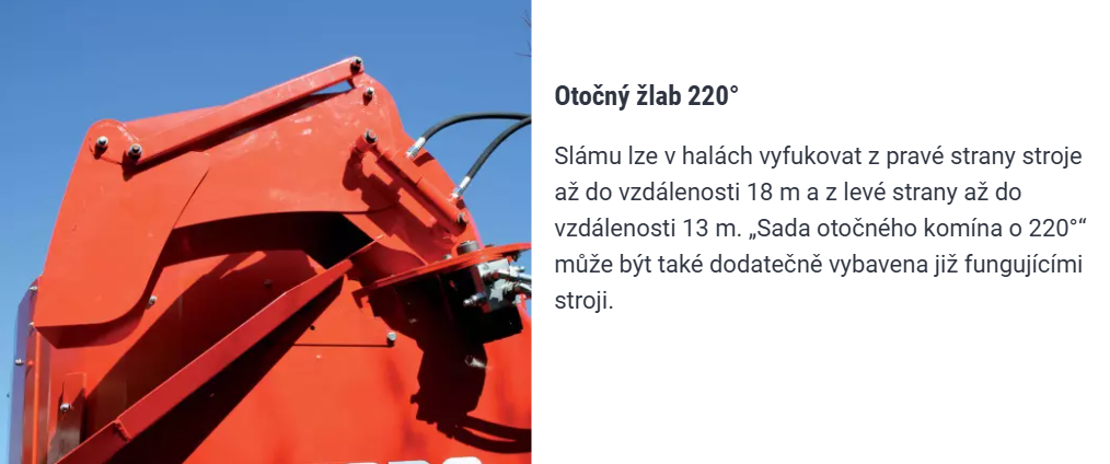 Standardně umožňuje rozdělovat krmivo na levou nebo pravou stranu. Dopravník je poháněn hydraulickým motorem na obou koncích, což zaručuje spolehlivý provoz bez ohledu na směr otáčení.