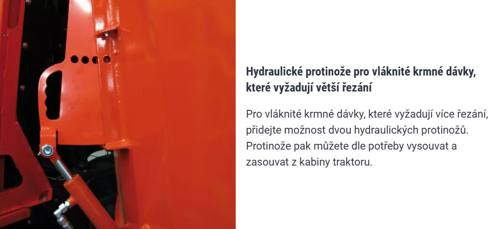 Dvojitý úhel sklonu krmného šneku umožňuje rychlé rozmělnění krmiva, bez ohledu na to, jak je krmný vůz již plný.