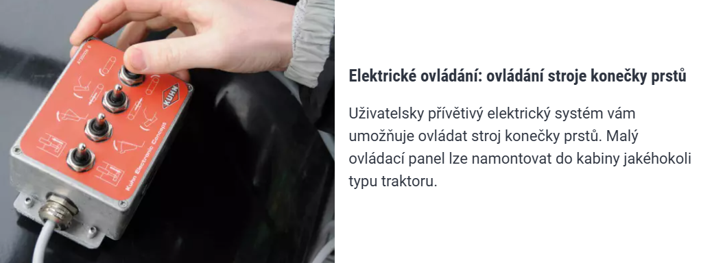 Stroje jsou vybaveny standardním přímým ovládáním, takže veškeré funkce lze pohodlně ovládat přímo z kabiny traktoru.