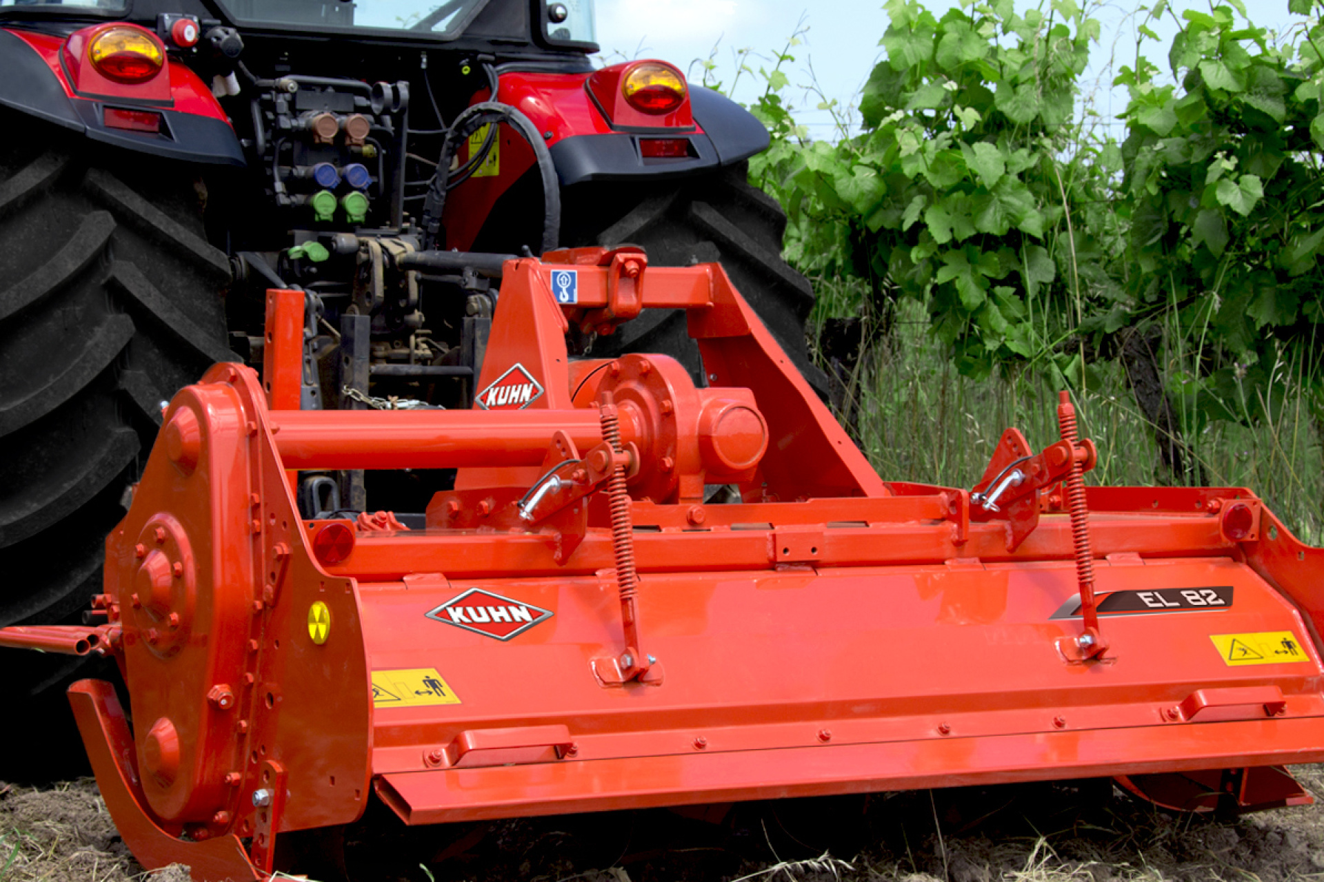 Rotační kypřiče KUHN pro vinice a sady se vyznačují nízkou, kompaktní konstrukcí a nízkým poměrem celkové šířky k pracovnímu záběru, což jim umožňuje proniknout do úzkých řádků. Díky možnosti bočního výkyvu je lze také přizpůsobit různým velikostem traktorů a pracovat co nejblíže plodinám. Jsou vhodné pro mnohostranné použití: mechanické odplevelení, drcení, zapravení rostlinných zbytků do půdy, předseťová příprava apod. Jejich robustní konstrukce snižuje náklady na údržbu.