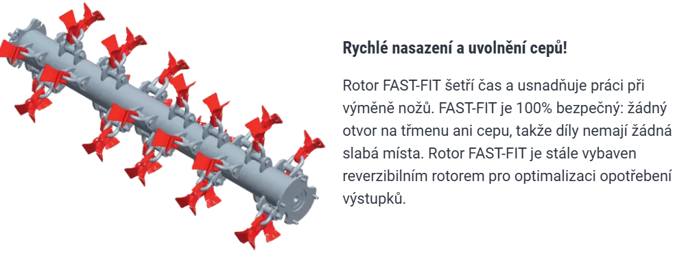 | Pohon | Patentovaný systém pohonu mulčovací jednotky přes 4 ozubená kola v olejové lázni | ||||