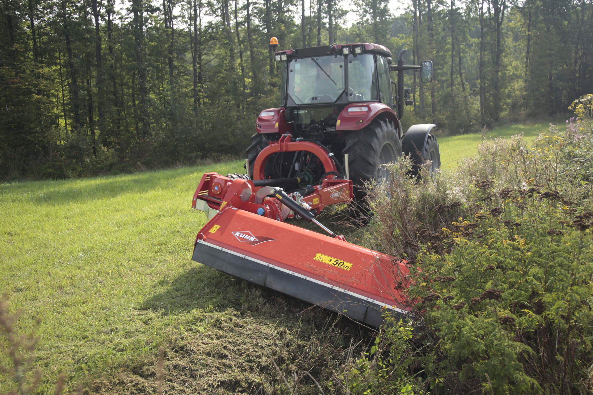 Pracovní úhly se pohybují od –65° (pro příkopy) až po +90° (pro živé ploty), takže trávě a křovinám, ať už na svazích nebo v příkopech, neodolá.