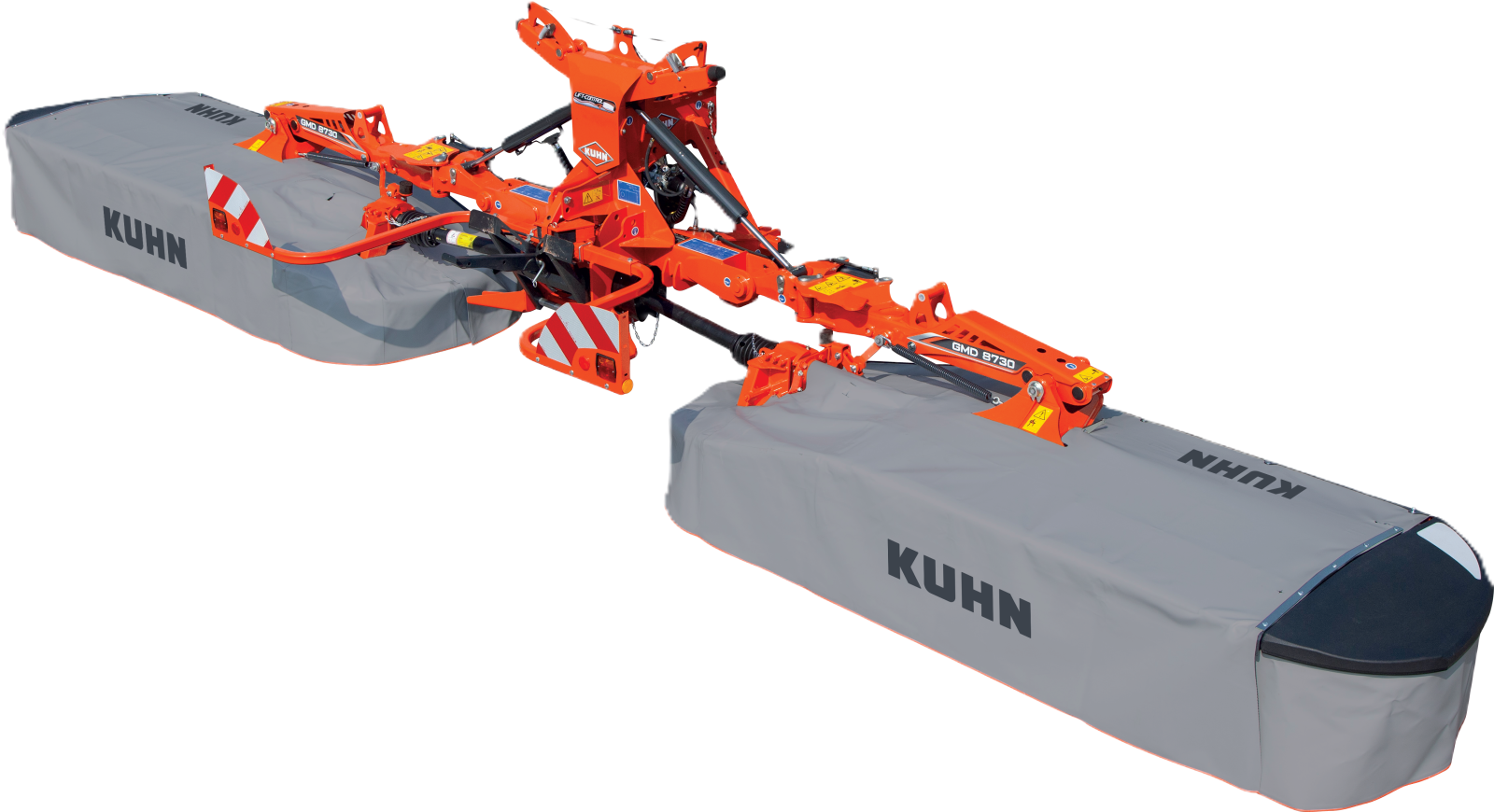 U modelu GMD 8730 je možné vybrat mezi třemi montážními pozicemi sekacích jednotek podle sklonnosti pozemku, velikosti parcely a šířky přední jednotky, což umožňuje optimalizovat pracovní šířku a překryvy.