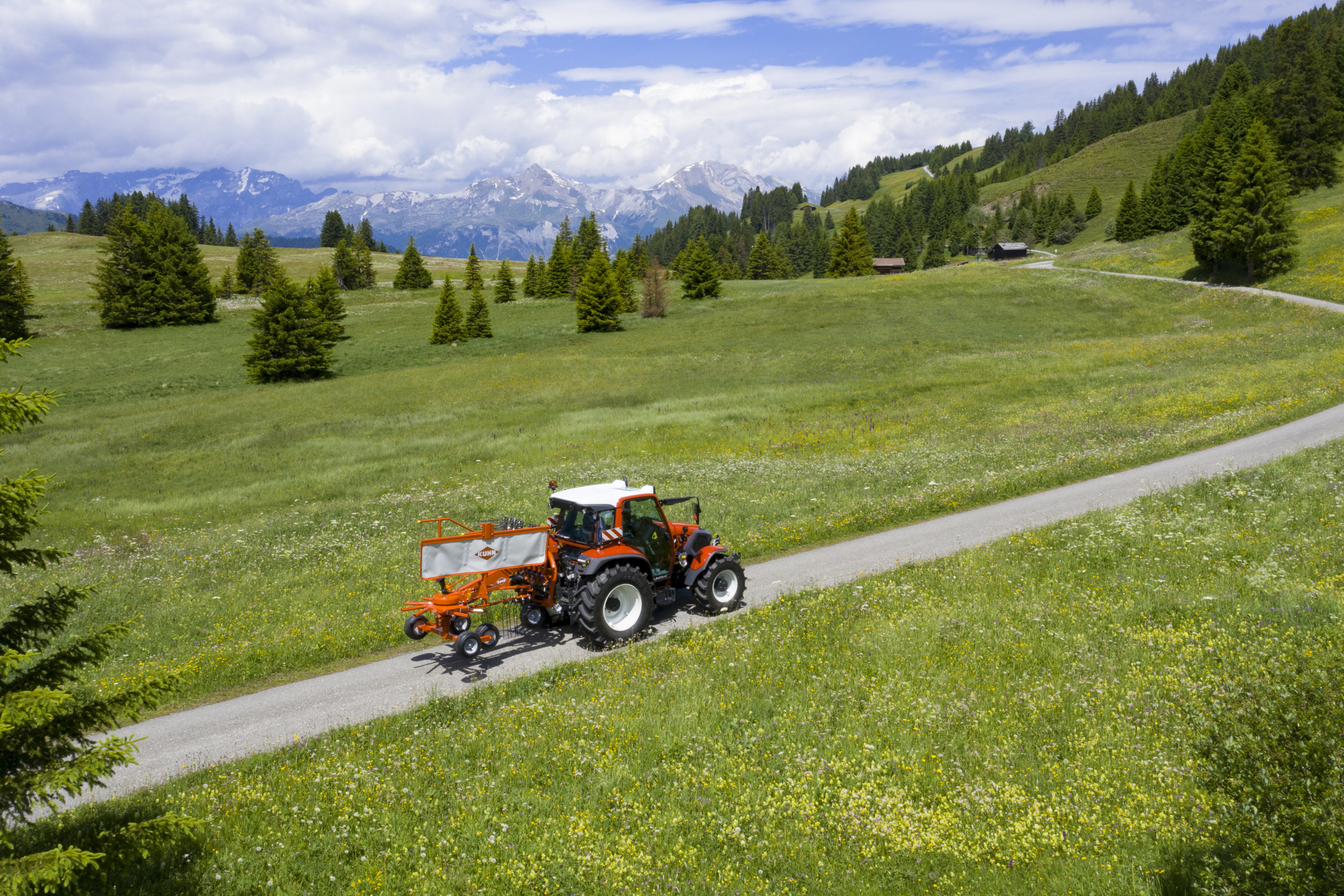 Sortiment jednorotorových shrnovačů píce KUHN se rozšiřuje o shrnovače píce GA 3901, GA 4201 a GA 4401. Doplňují řadu jednorotorových modelů s pracovními záběry 3,90, 4,20 a 4,40 m. Inovativní konstrukce pohonu zajišťuje výhoz do zakládky vpravo: jasná výhoda z hlediska komfortu pro uživatele. Navrženo pro malé traktory pracující v kopcovitých oblastech, zvláštní pozornost byla věnována snížení hmotnosti a dobré ergonomii. Dvě výkonné pružiny s brzdou zajišťují vynikající vycentrování při zvedání stroje na souvratích. Tyto dvě pružiny přispívají k dokonalému držení hrabic při jízdě po špatně udržovaných cestách. Pro dobrou manévrovatelnost na úzkých pozemcích nebo v zatáčkách se závěs otáčí až o 48°! Jedná se o prostředek, který zabraňuje poškození porostu koly.