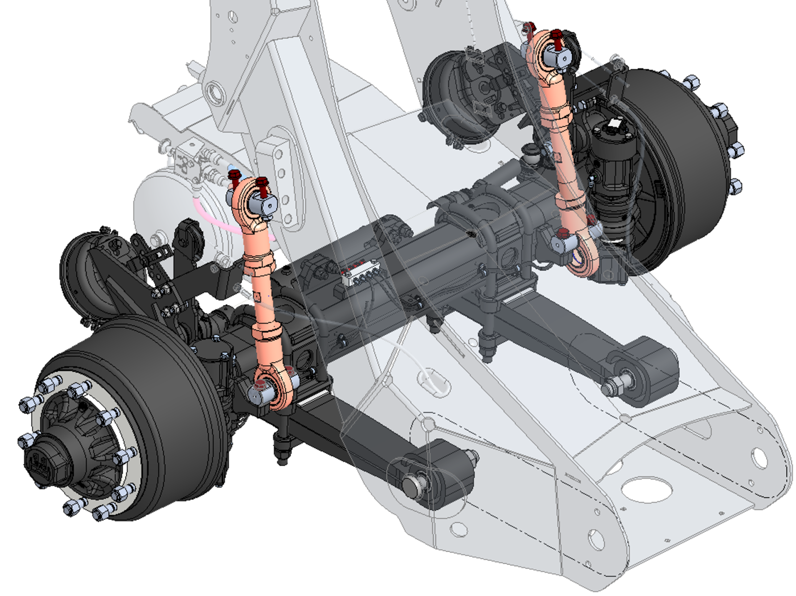 Postřikovač je standardně vybaven robustním mechanickým odpružením listovými pružinami, známým svou odolností a nízkými nároky na údržbu. Volitelně je k dispozici hydropneumatické odpružení s automatickou kompenzací zatížení nádrže, které poskytuje vynikající jízdní komfort jak na silnici, tak hlavně v terénu.