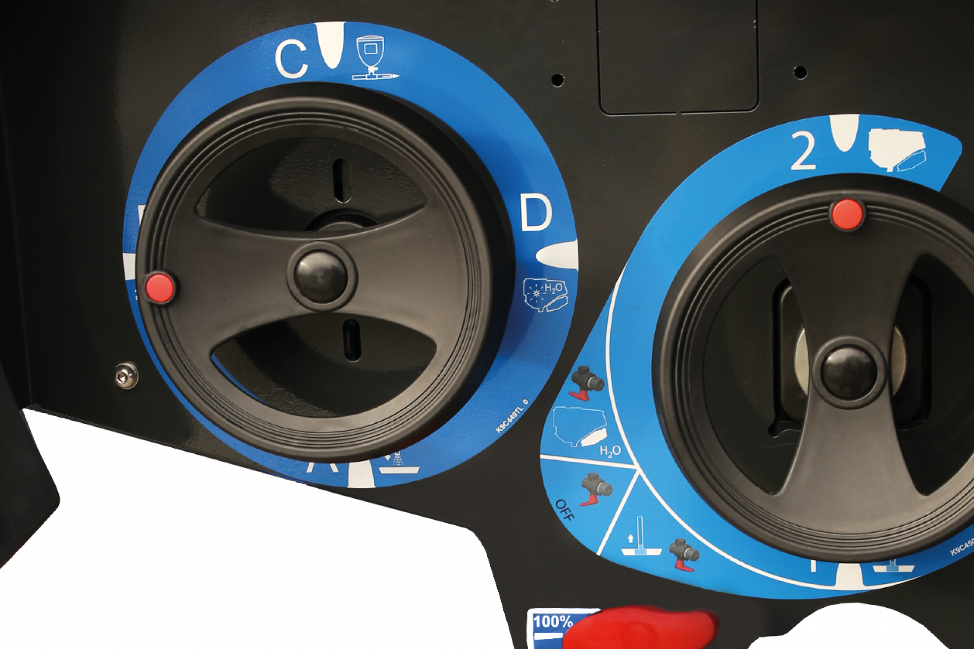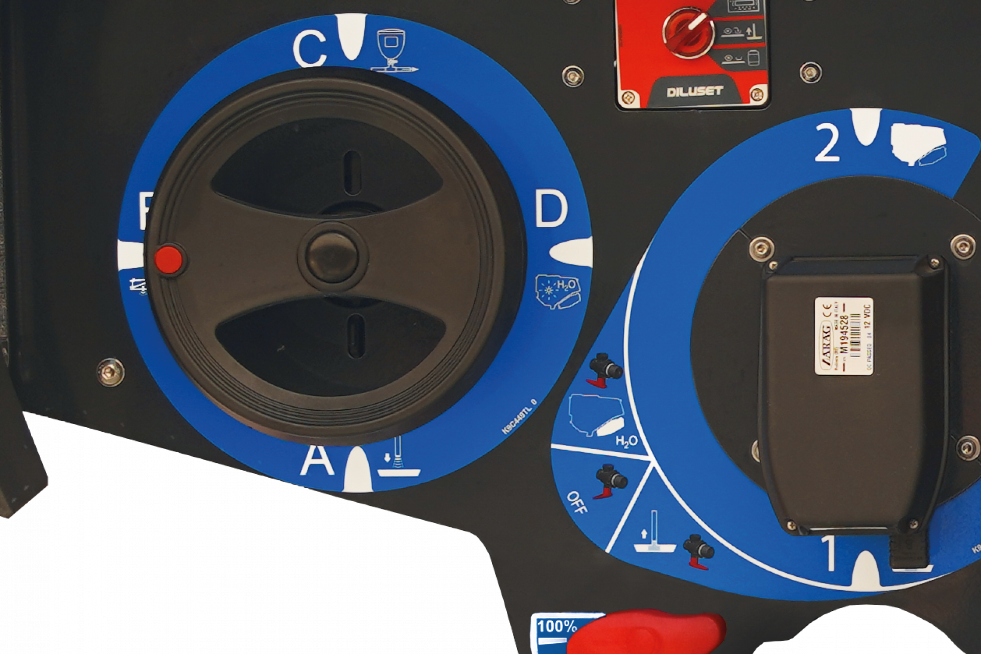 Přimíchávací nádrž má pouze jeden ventil, kterým může být účinná látka zavedena do okruhu. Tento ventil je bezpečně ovládán nožním pedálem, takže obsluha se nemusí ohýbat. Všechny ostatní operace se provádějí pomocí ručního pistole s vodou umístěné poblíž, čímž se eliminuje veškeré riziko kontaktu člověka s chemií. Přimíchávací se opláchne a kryt se zavře, čímž se zabrání jakémukoli riziku postříkání nebo zamlžení.