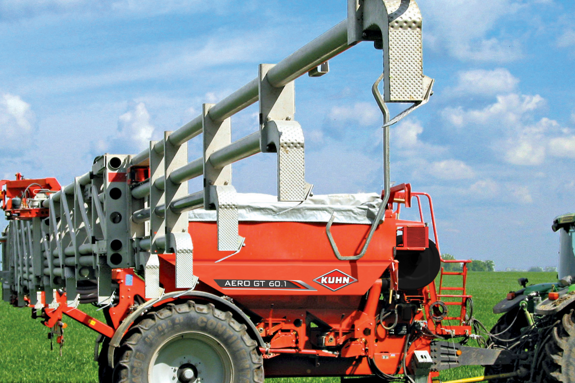 Nerezové výložníky pneumatického rozmetadla AERO GT jsou extrémně přesné. 30 vývodů umístěných každých 1,20 metru zajišťuje vějířovitý rozptyl s dvojitým překrytím. Přesnost příčného rozmetání je nepřekonatelná za každého větru nebo povětrnostních podmínek.