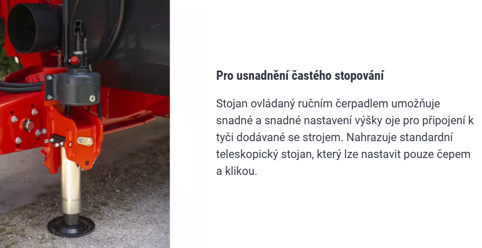 Systém umožňuje zvedání čekajících balíků pro snadné odstranění provázků nebo pletiva bez námahy.