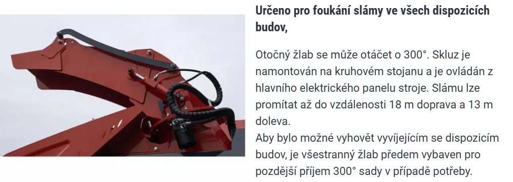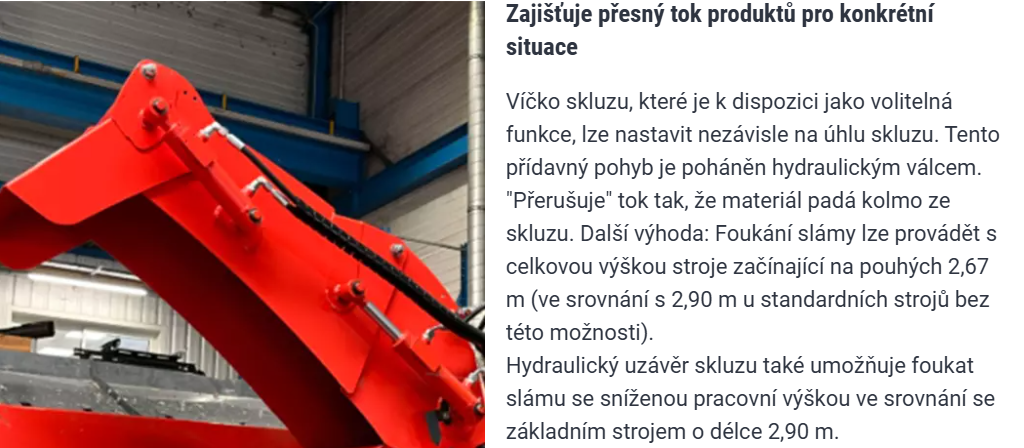 Okamžité přerušení foukání nebo distribuce slámy – hydraulické odpojení rotoru je ideální při práci v blízkosti sloupů, napáječek či jiných překážek.