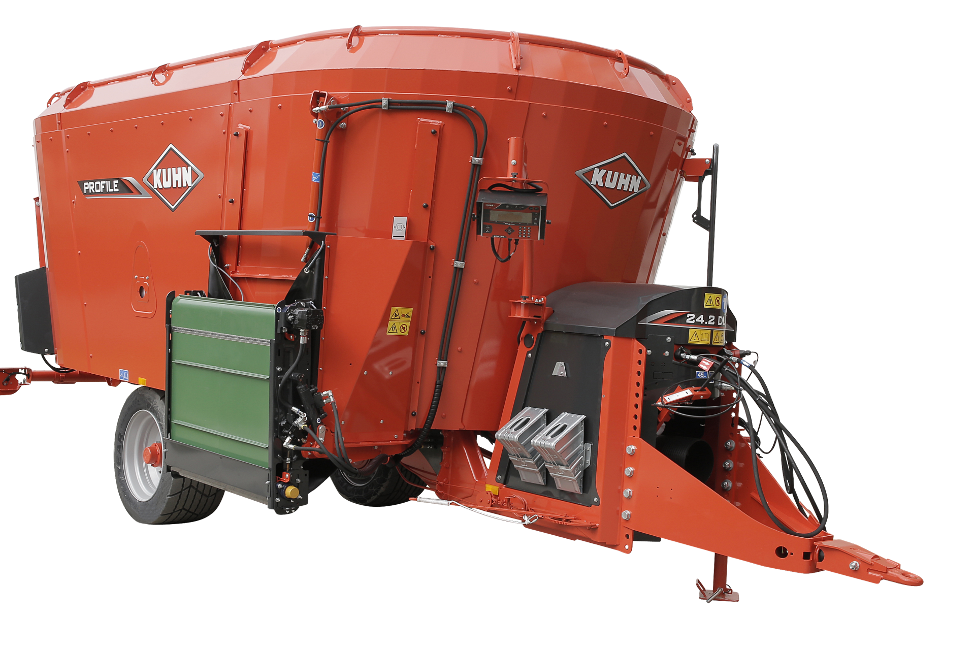 S kapacitami od 18 m³ do 34 m³ jsou tyto stroje ideální pro větší farmy a pro manévrování v těsných prostorech. Tato nová řada krmných vozů PROFILE nastavuje zcela nový standard v sektoru tažených krmných vozů.