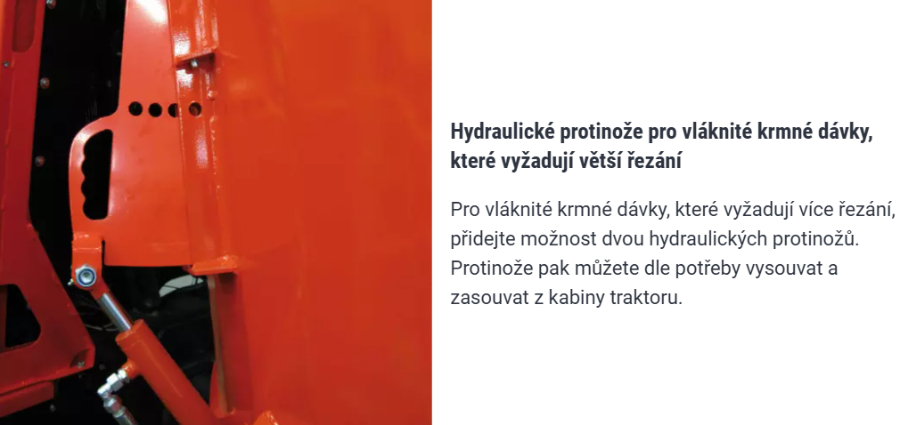 Může být výhodné při práci s různými typy staveb nebo když je potřeba distribuovat krmivo dál od vozu.