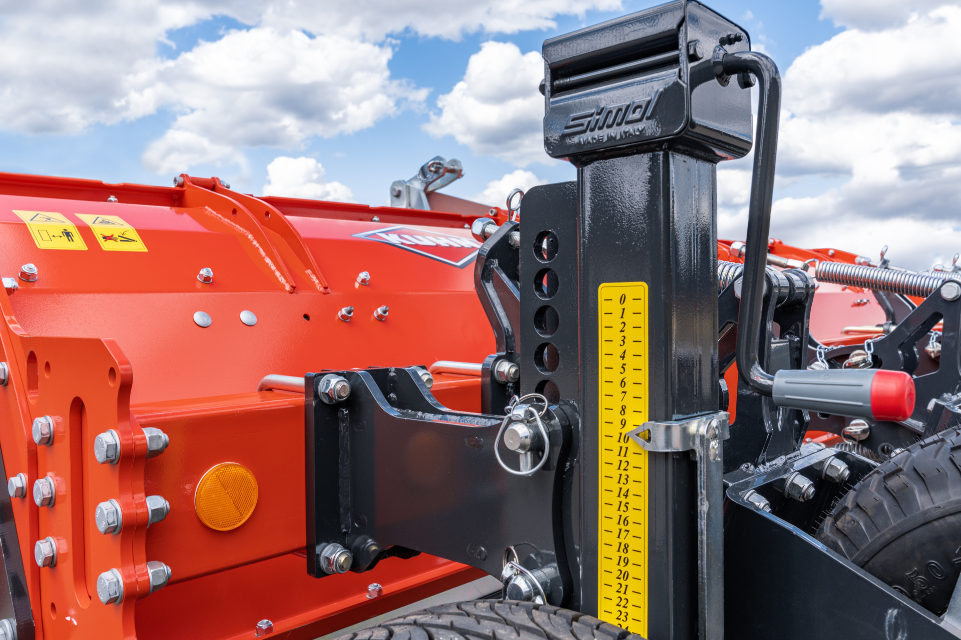Tyto mulčovače se snadno ovládají. Pracovní výška se nastavuje pomocí odstupňovaných opěrných kol.