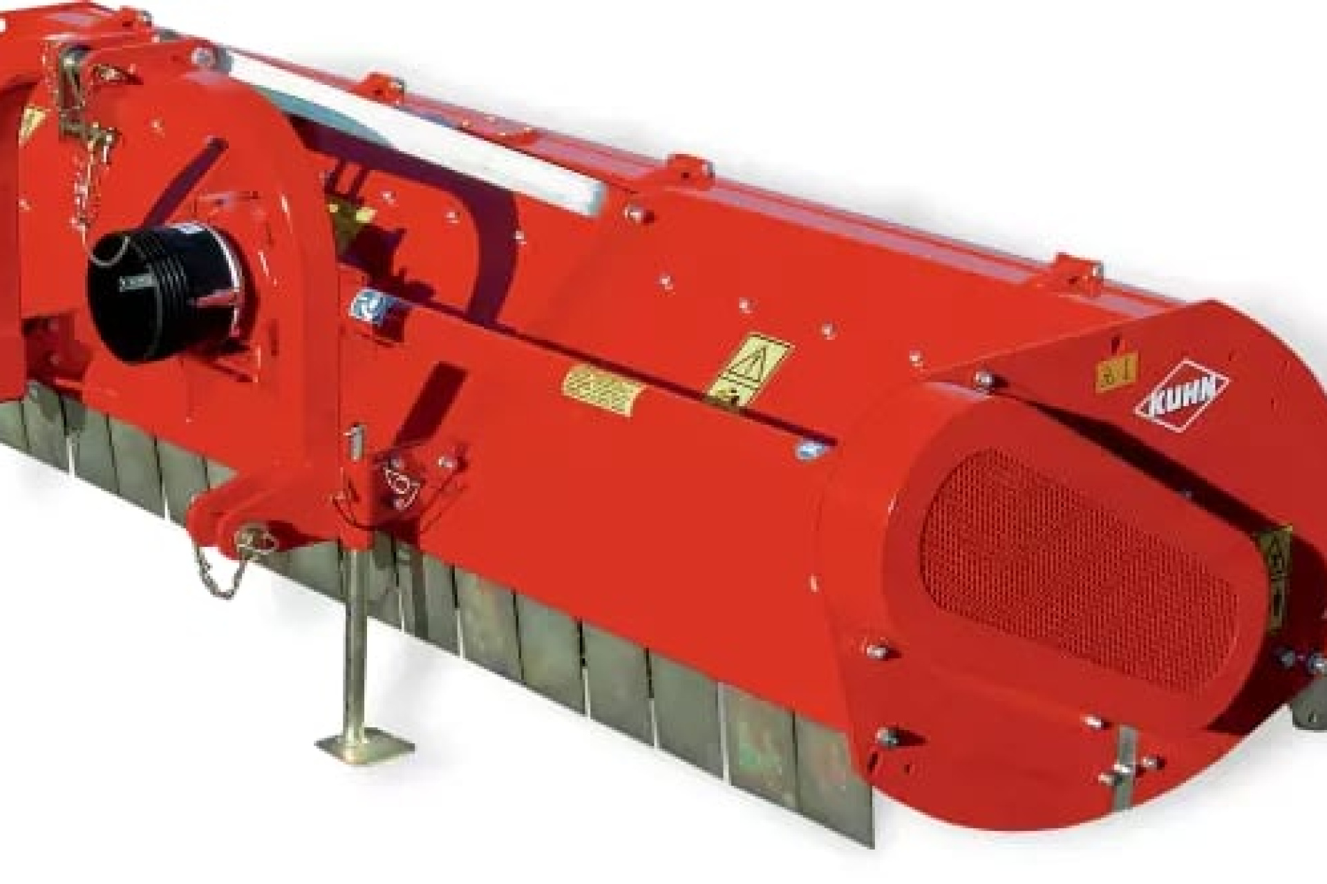 Mulčovač KUHN BK vyniká robustní konstrukcí závěsného systému, který zajišťuje vysokou tuhost spojení mezi traktorem a strojem, a to i při práci v náročném terénu nebo při záběru s těžkou vegetací.