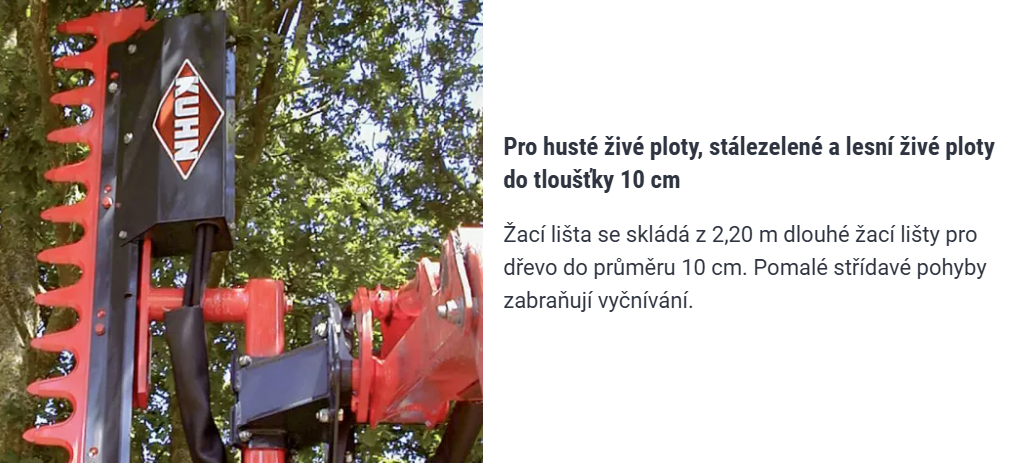 Vertikální dosah až 6,83 m umožňuje pracovat bezpečně a precizně i na vysokých živých plotech – a následně provádět sklizňové práce co nejblíže k jejich okraji, bez rizika zachycení stroje.