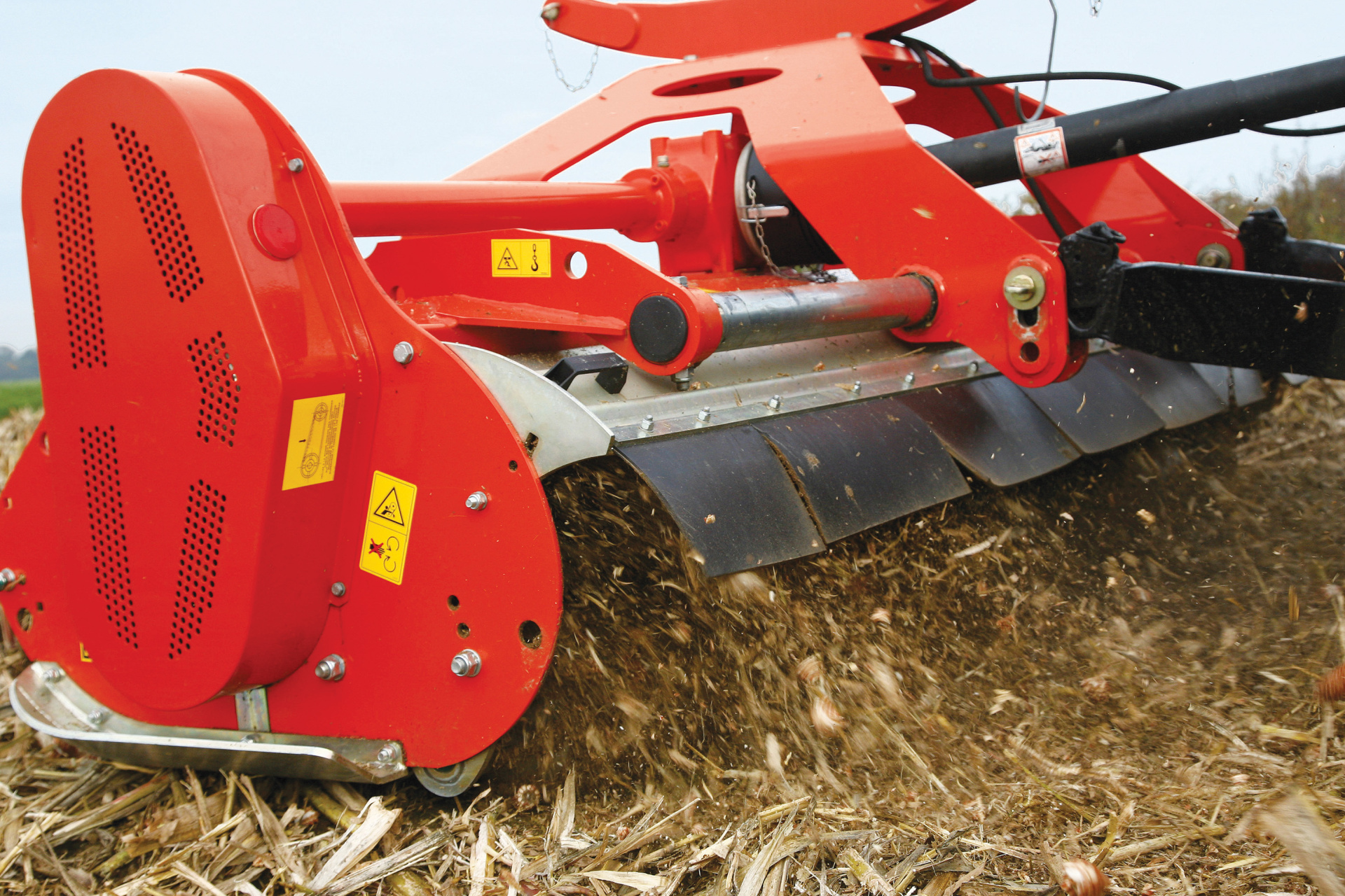 Osm řad nástrojů uspořádaných ve spirálovité konfiguraci na rotoru zajišťuje dokonalé nasávání materiálu a jeho rovnoměrné rozprostření za rotorem. Pro maximální kvalitu drcení je drticí komora vybavena dvěma protinoži – jedním rovným a jedním vroubkovaným –, které zajišťují čisté, účinné a konzistentní zpracování vegetace i rostlinných zbytků.