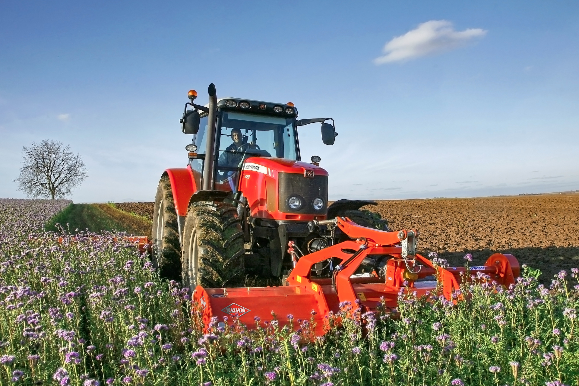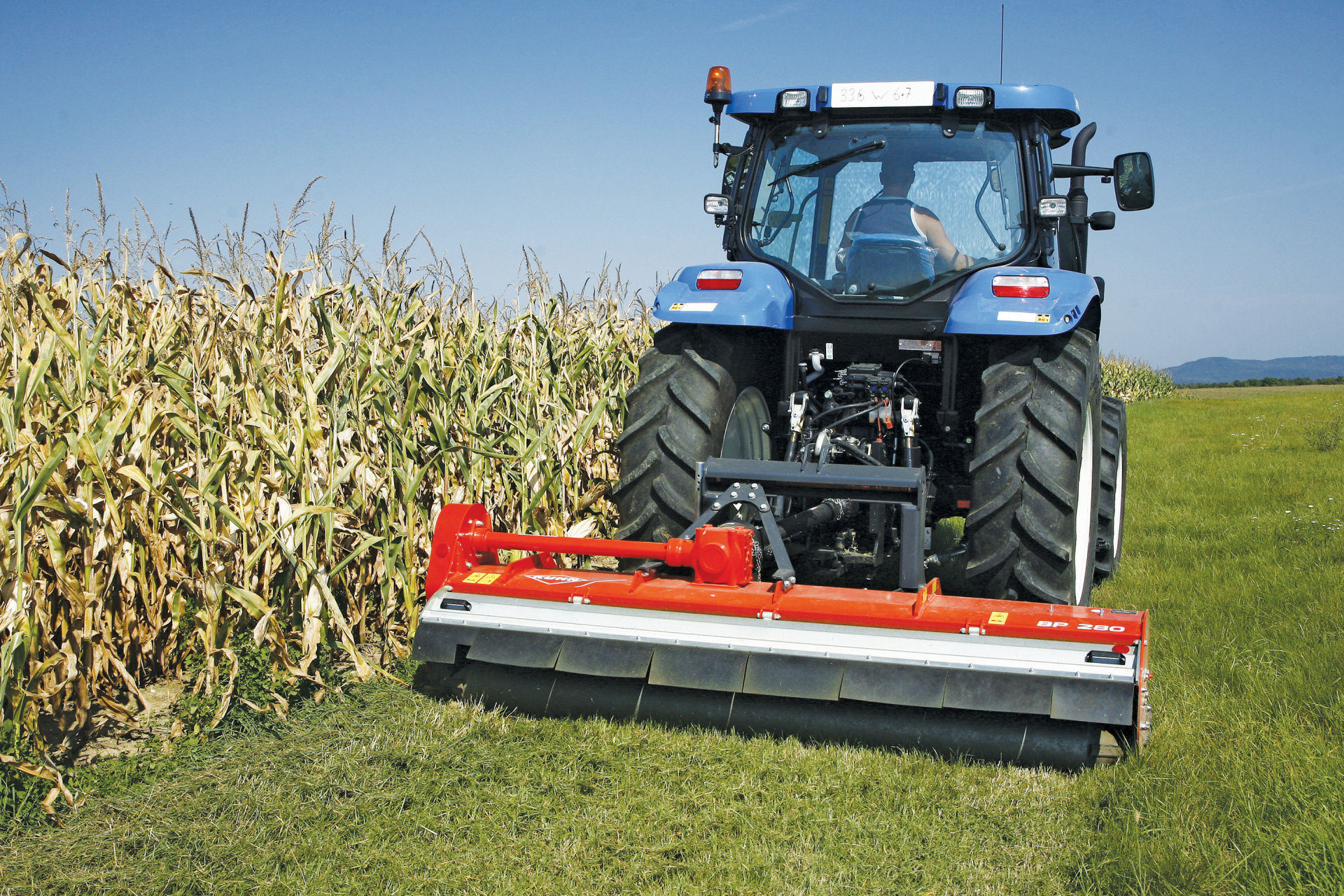 V čelně nesené verzi traktor nepřeklápí rostliny, což zajišťuje rovnoměrnější a kvalitnější mulčování.