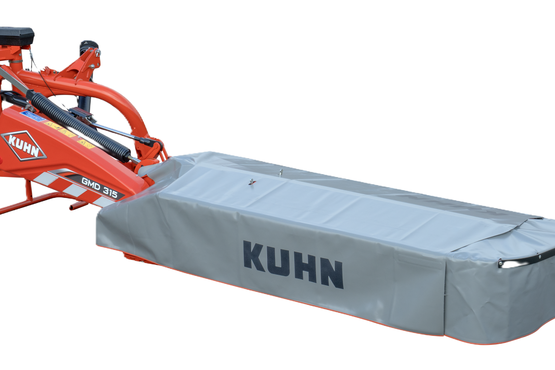Žací stroje řady GMD 105 jsou standardně vybaveny zesíleným vnějším propojením mezi rámem a žací lištou. Toto robustní spojení je osazeno dvěma gumovými silentbloky, které účinně tlumí rázy a udržují stabilitu lišty i v náročných podmínkách nebo při jízdě po nerovných cestách.