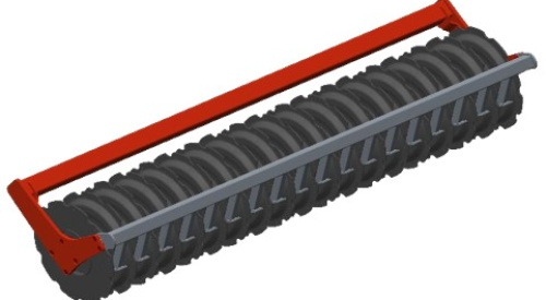 - dvojitý U válec o průměru 600 mm zajišťuje dobrou únosnost a dobré utužení povrchu (175 kg/m). Jeho profil ve tvaru písmene U podporuje kontakt země-země, omezuje opotřebení a zabraňuje jakémukoli vyhlazení. Navíc je samočistící a necitlivý na uvíznutí.
